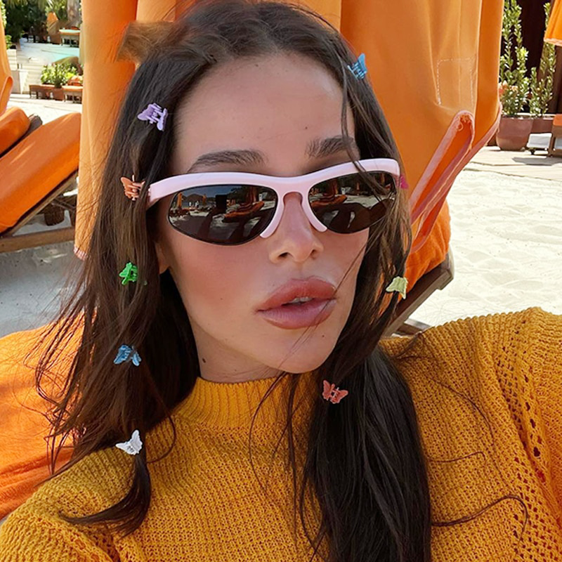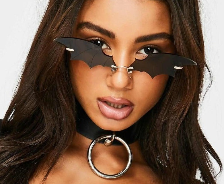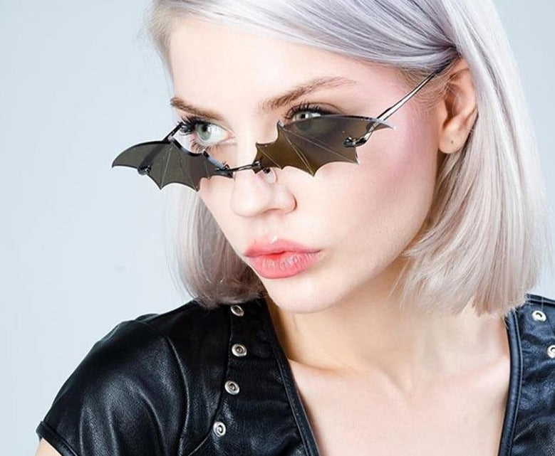Vintage Batwing Design Mirror Rimless Cat Eye Sunglasses