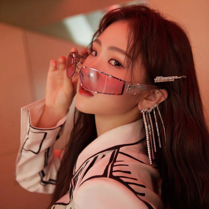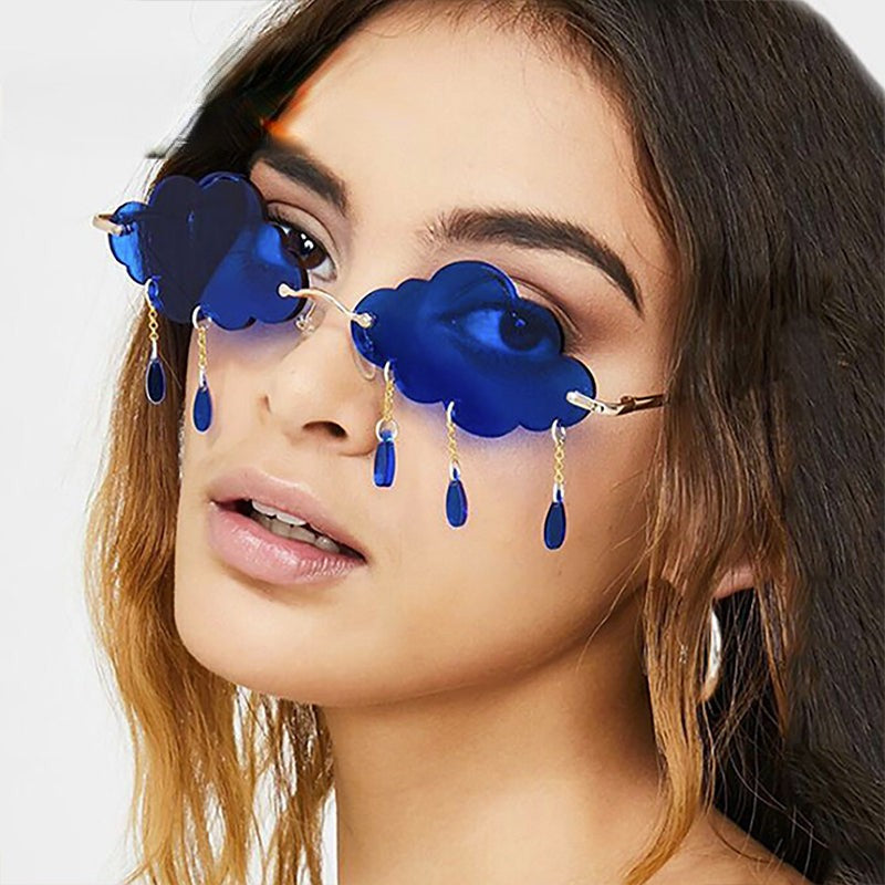 Rimless Cloud Chain Tassel Retro Sunglasses