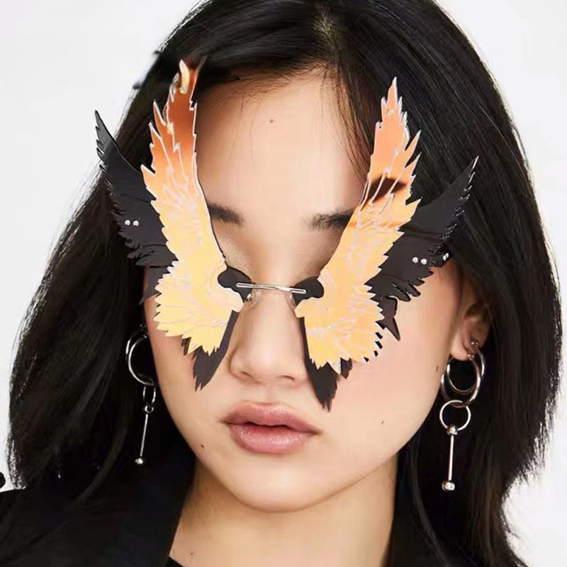 Oversize Angel Wings Rimless Sunglasses