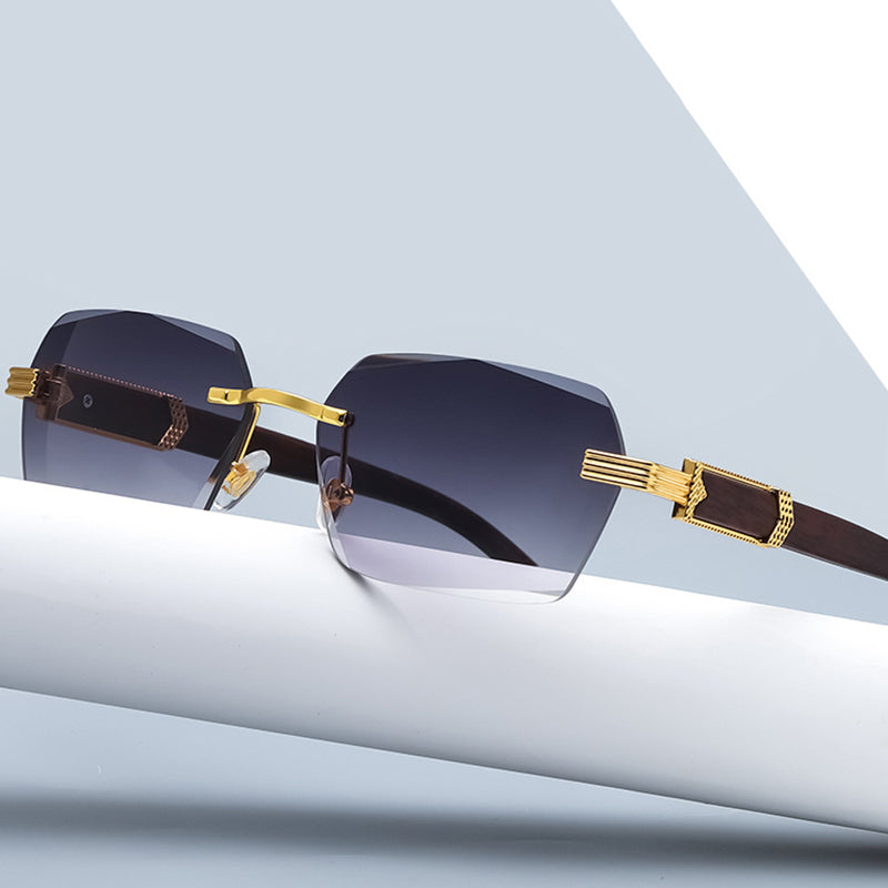 Square Rimless Gold Statement Sunglasses