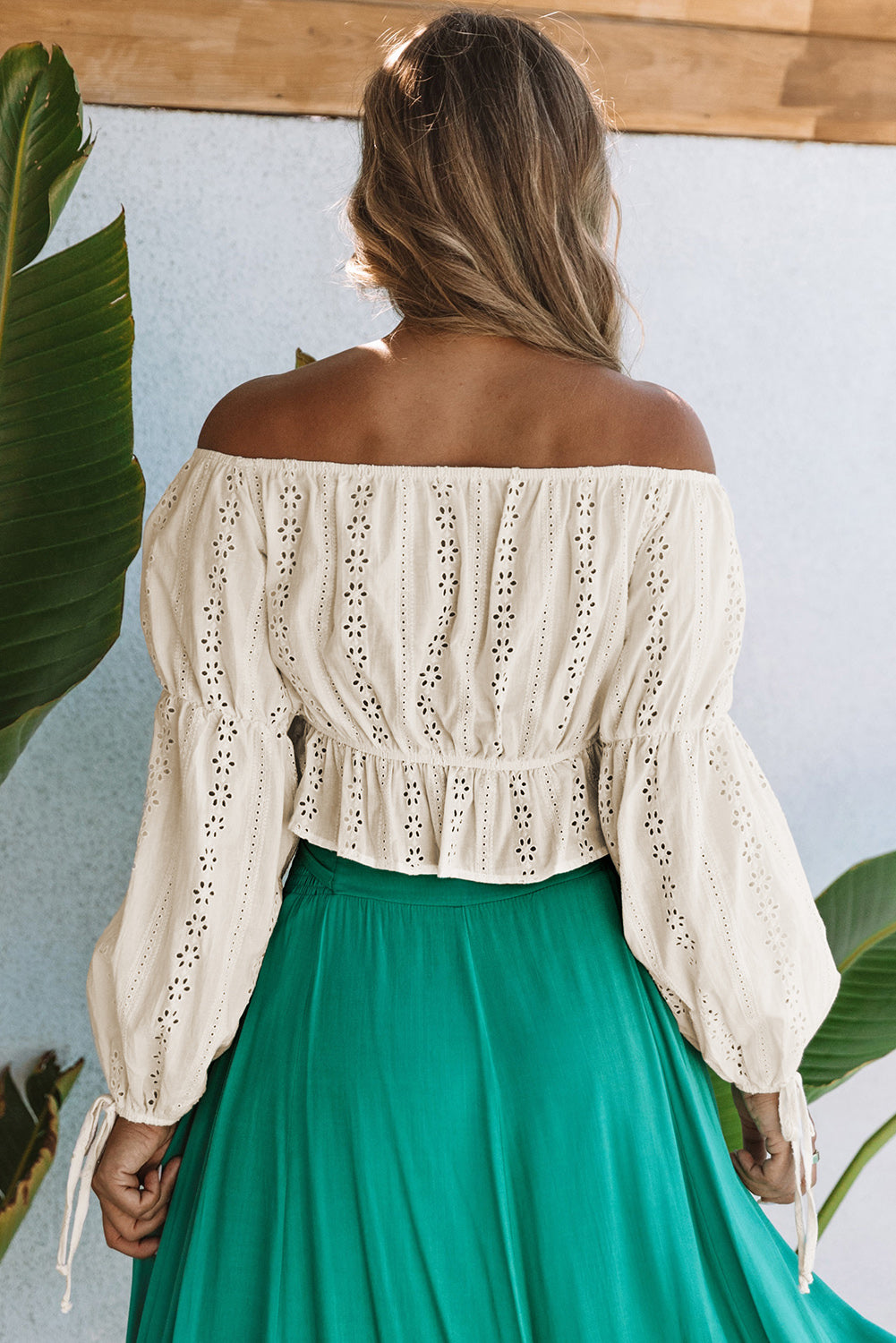 Apricot Off The Shoulder Eyelet Crop Top