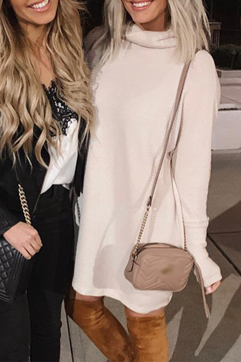 Casual Solid Split Joint Without Belt Turtleneck Dresses Sweater