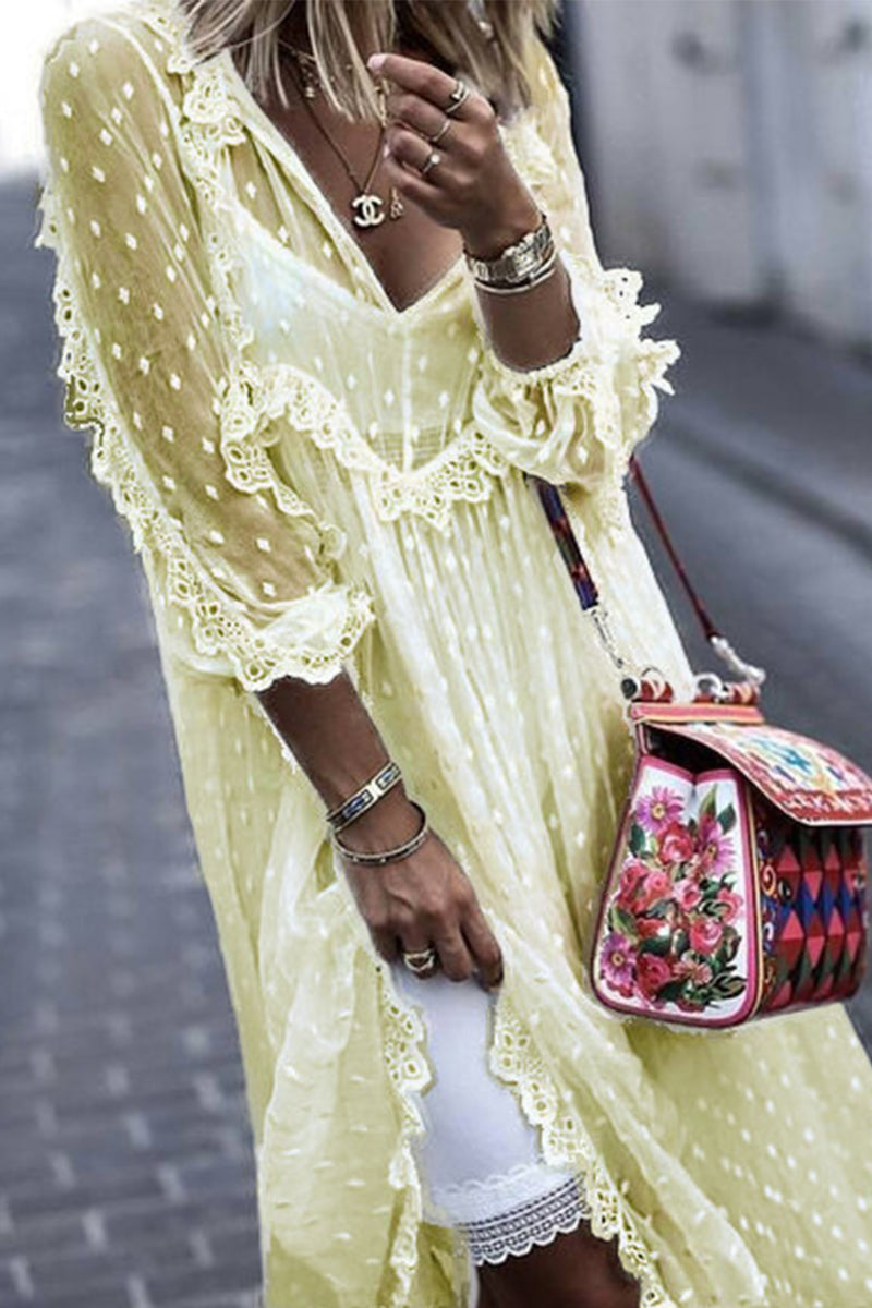 Casual Elegant Solid Lace Frenulum Stringy Selvedge V Neck Lace Dress Dresses(3 Colors)