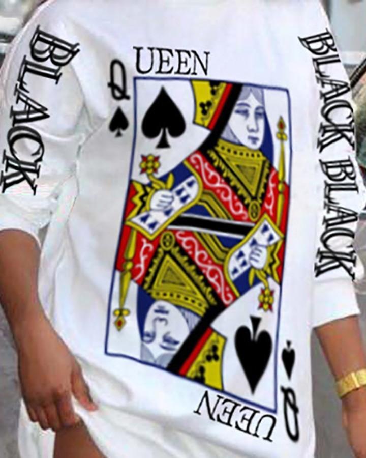 Poker Letter Print Long Sleeve Casual Dress