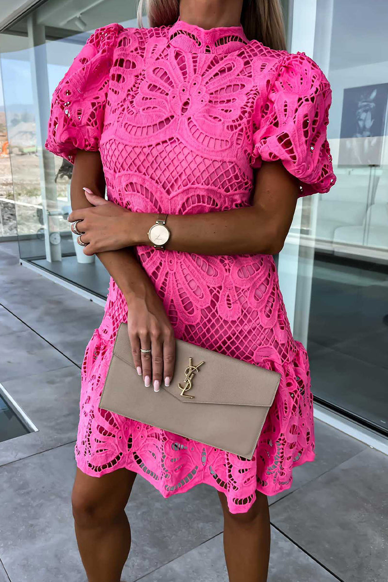 Casual Solid Hollowed Out V Neck A Line Short Sleeve Dress(8 Colors)