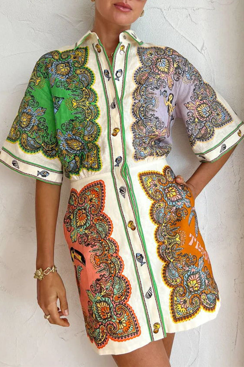 Elegant College Geometric Printing O Neck Printed Dresses(4 Colors)