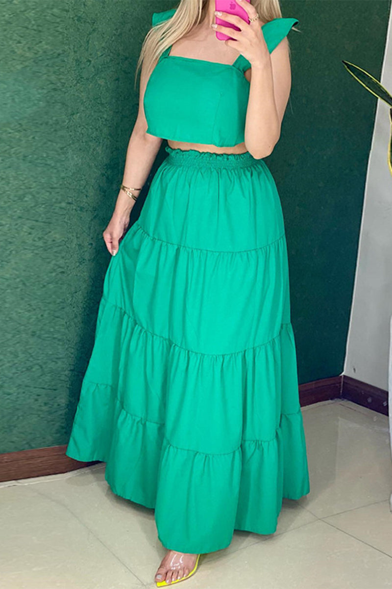 Celebrities Elegant Solid Fold Square Collar One Step Skirt Dresses