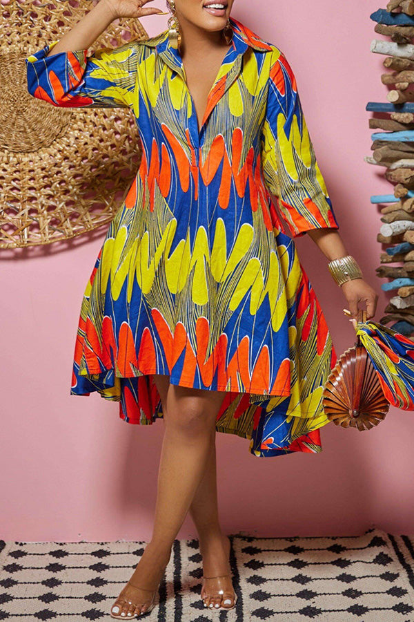 Chic Graphic Print Batwing Sleeve Slash Neck Plus Size Midi Dress