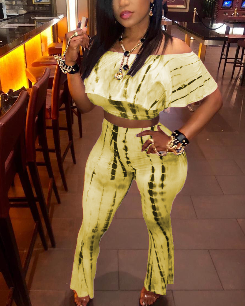 Tie Dye Off Shoulder Foldover Top & Pants Set