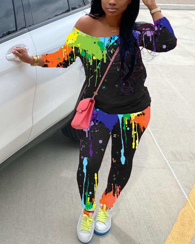 Graffiti Print One Shoulder Top & Pants Set