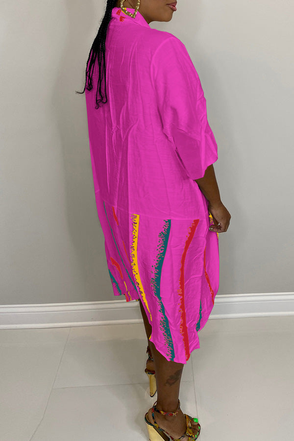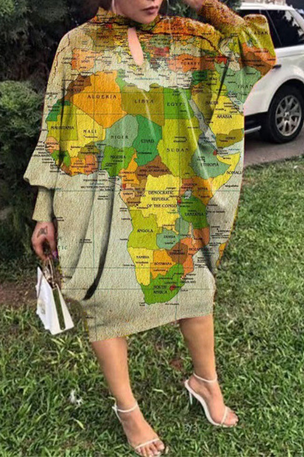 Comfortable Print Batwing Sleeve Loose Midi Dress