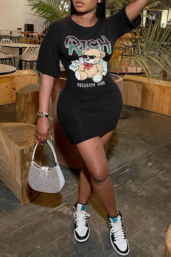 Fashion Hot Panda Hot Print Print Hip Cover Short Sleeve Dress
