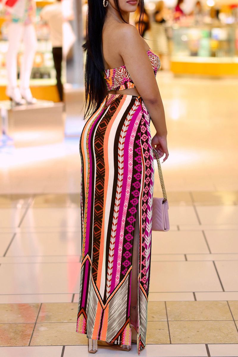 Geo Print Cut Out Split Side Maxi Dress