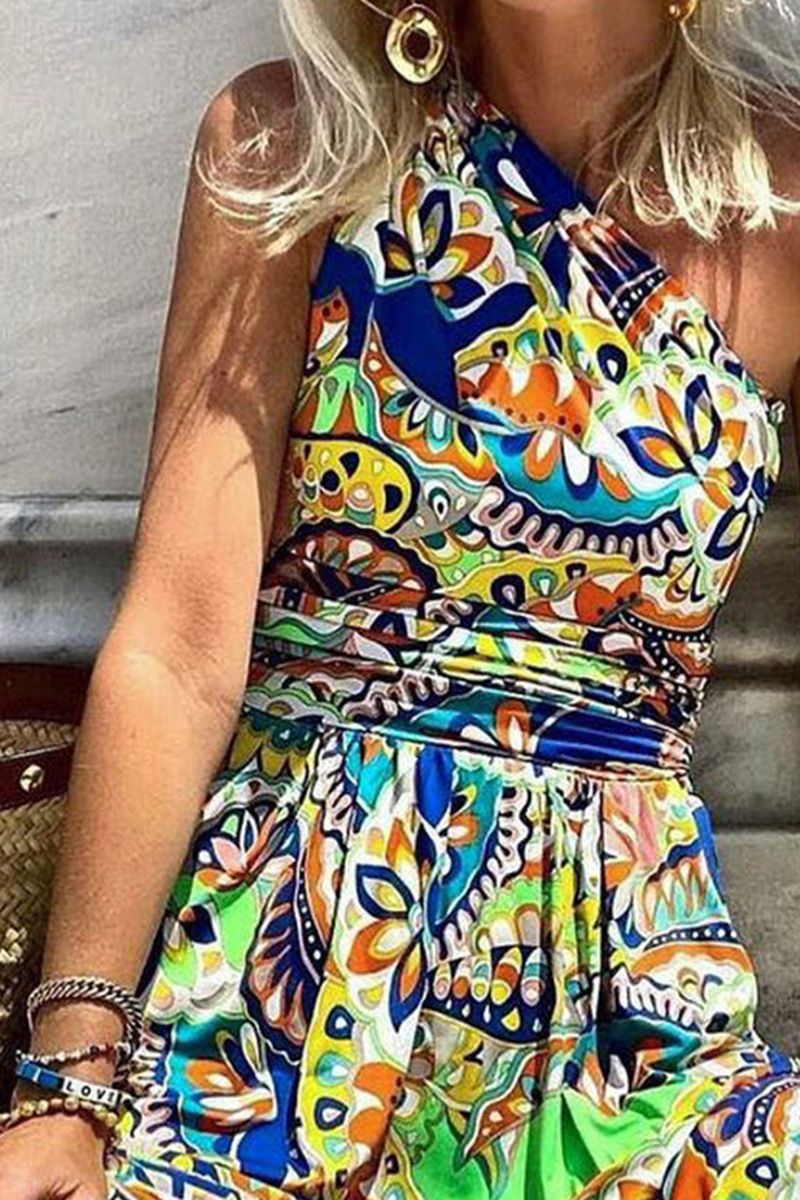 Allover Print Backless Halter Dress