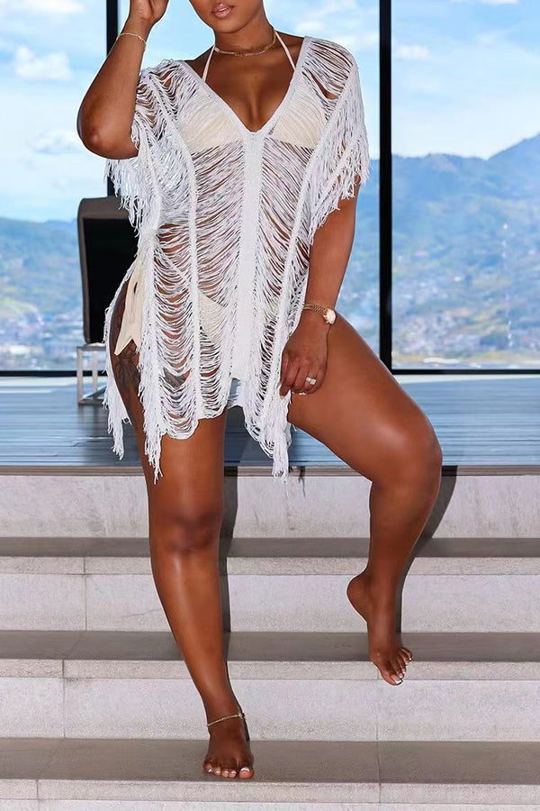 Sexy Fashion Hollow Solid Color Beach Dress