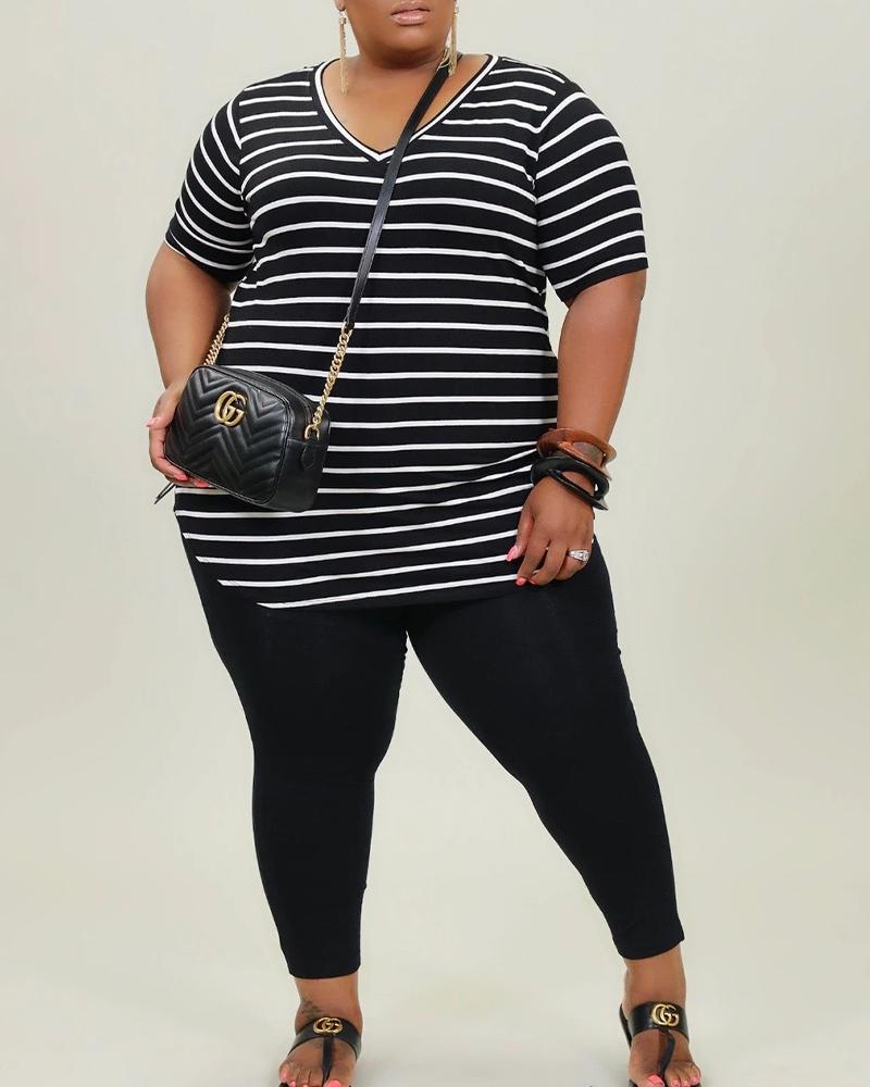 Striped Split Curve Hem V Neck Tee & Pants Set