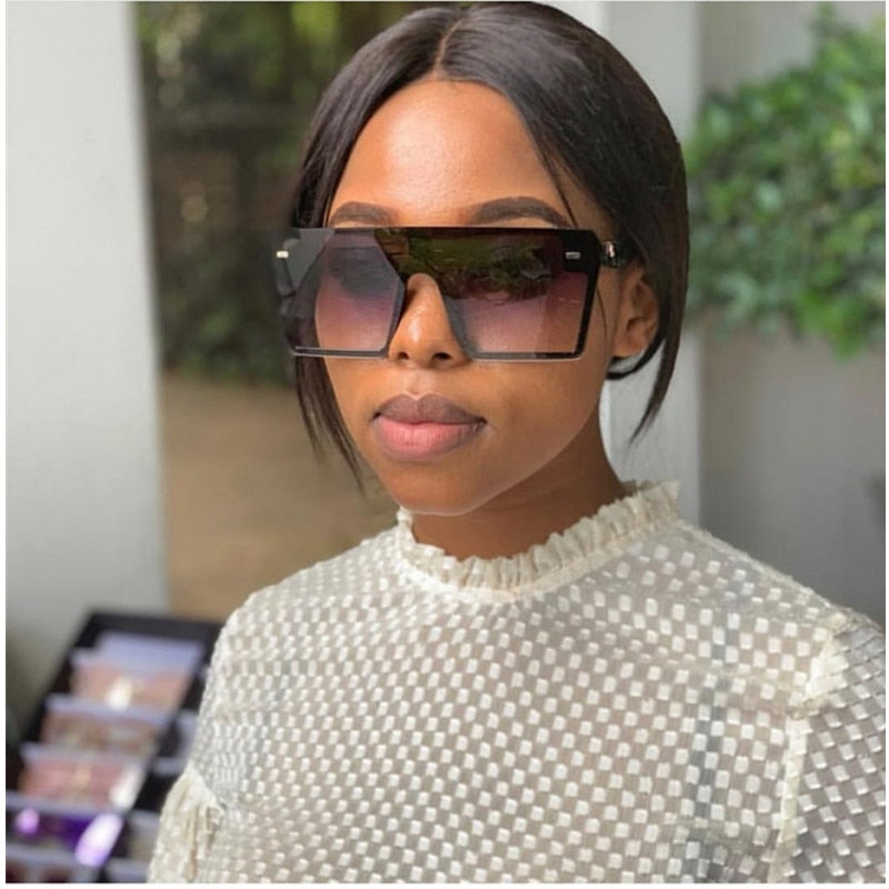 Big Frame Vintage Flat Top Gradien Lens Retro Mask Sunglasses