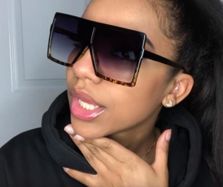 Vintage Oversize Shades Leopard Square Sunglasses