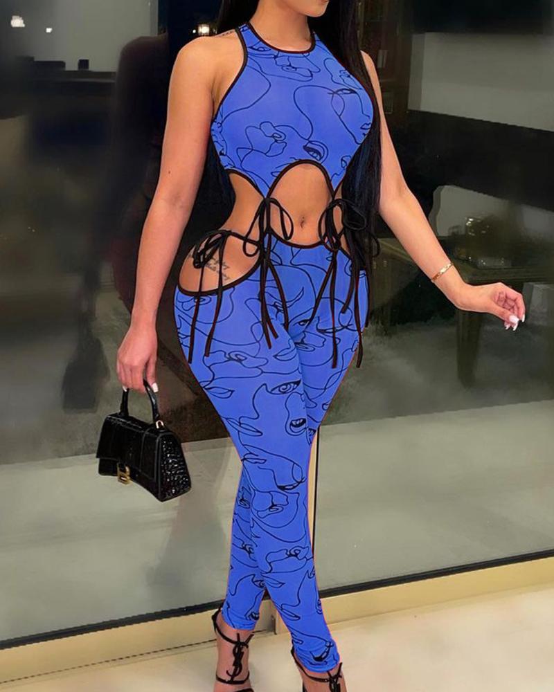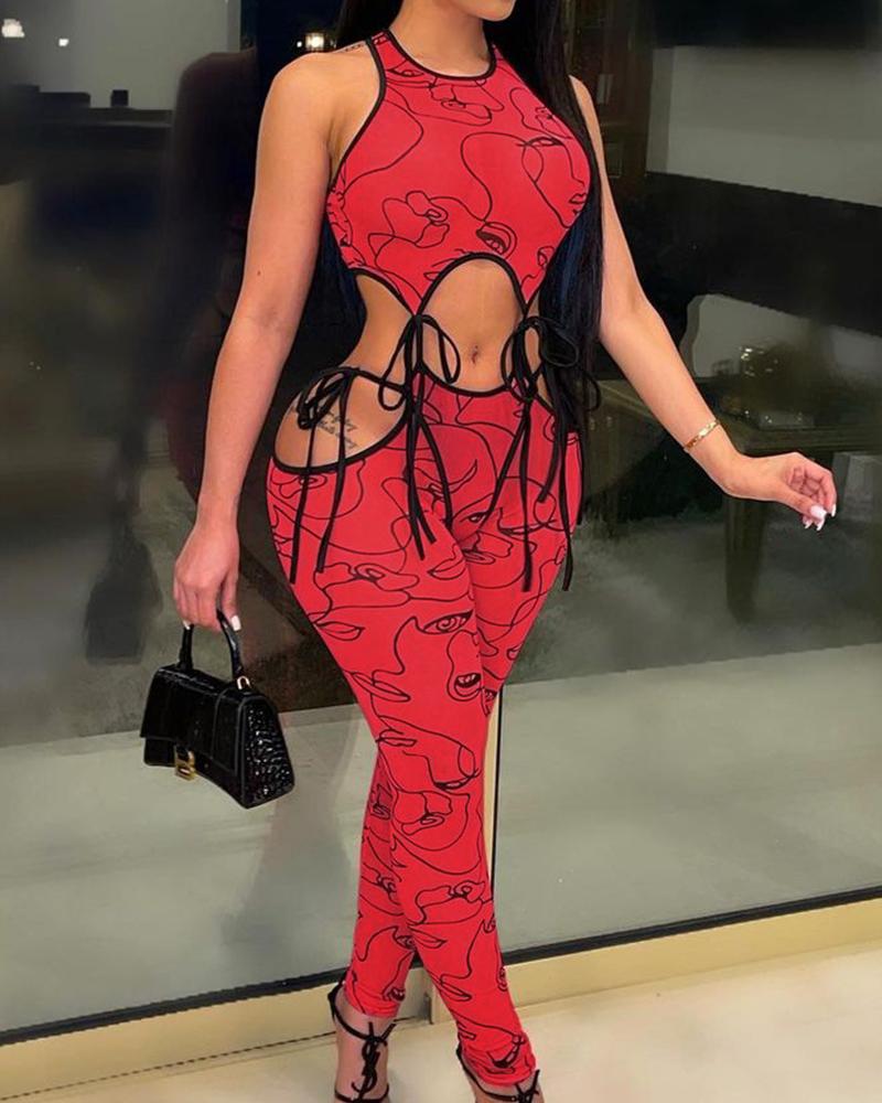 Geo Print Cut Out Self-Tie Top & Pants Set