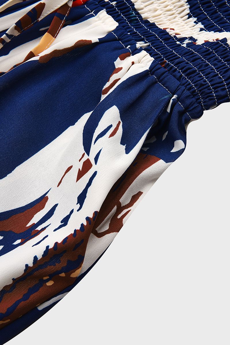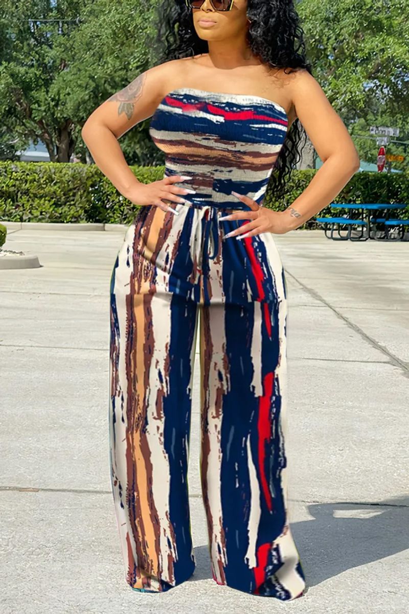 Allover Print Drawstring Waist Strapless Jumpsuit