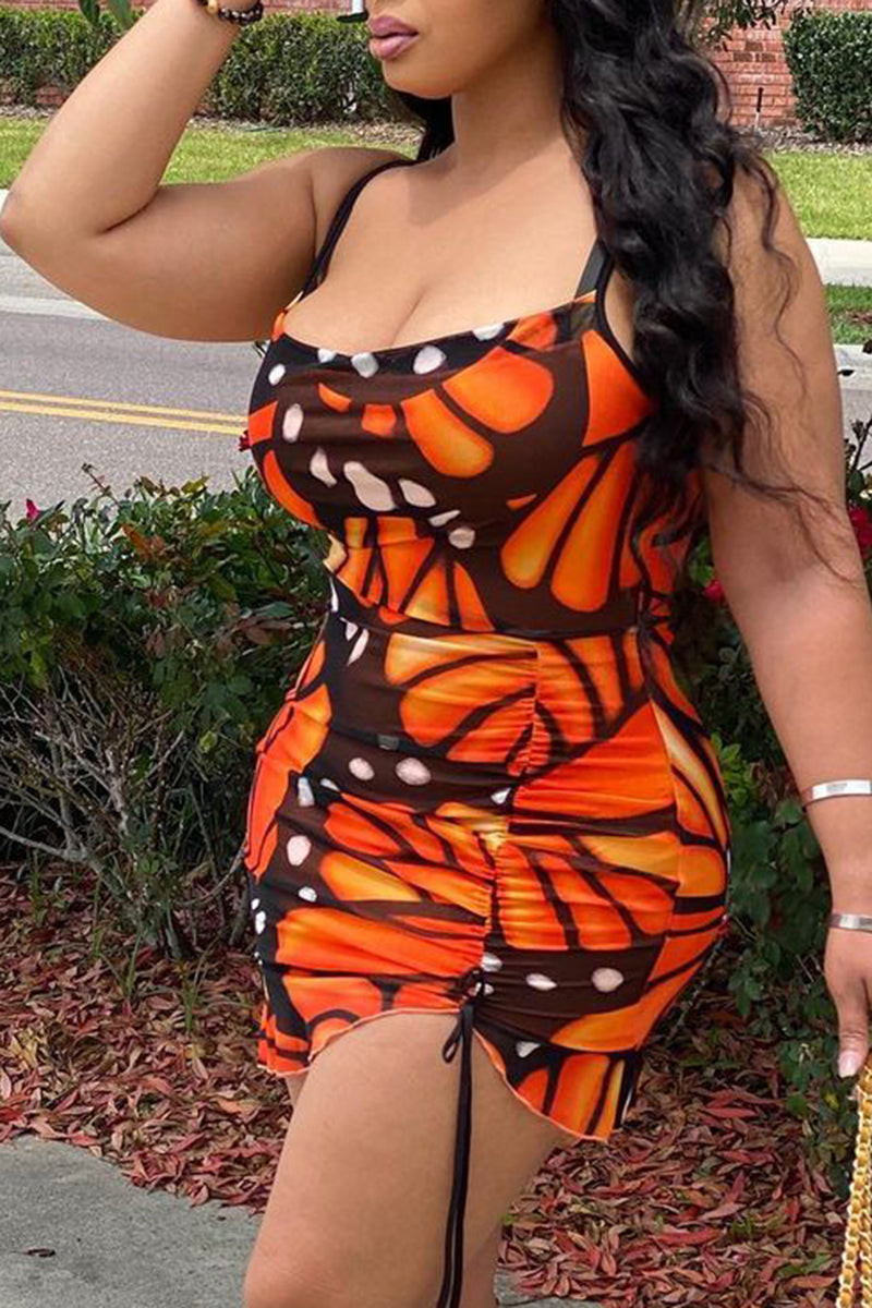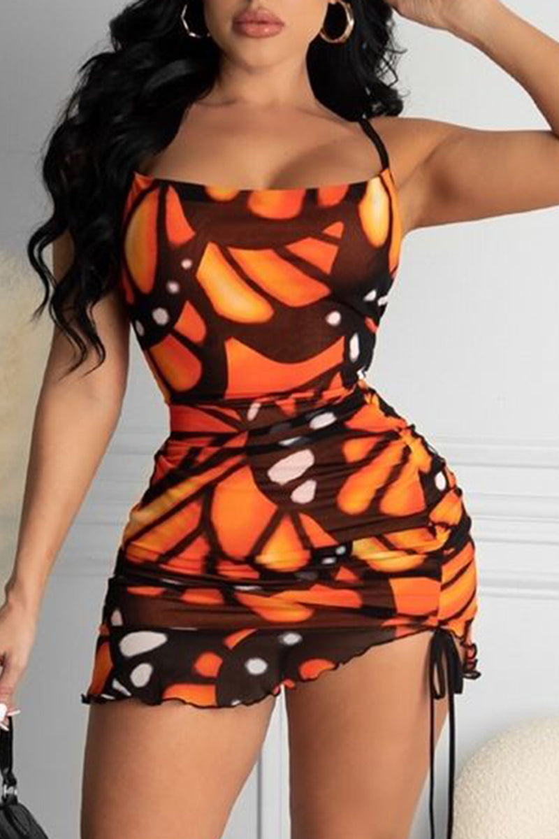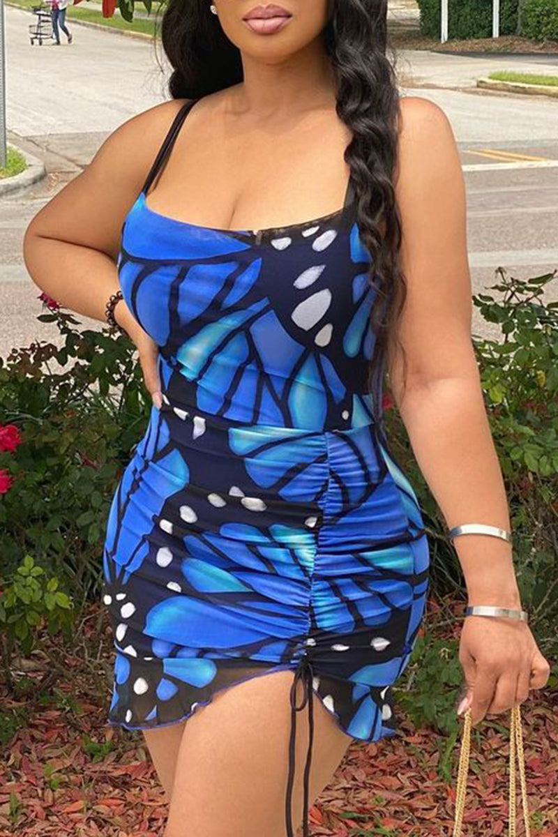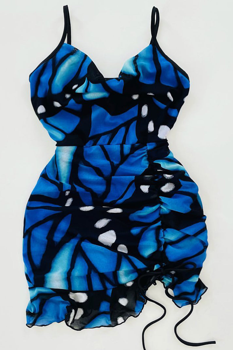Allover Print Drawstring Ruched Mini Cami Dress