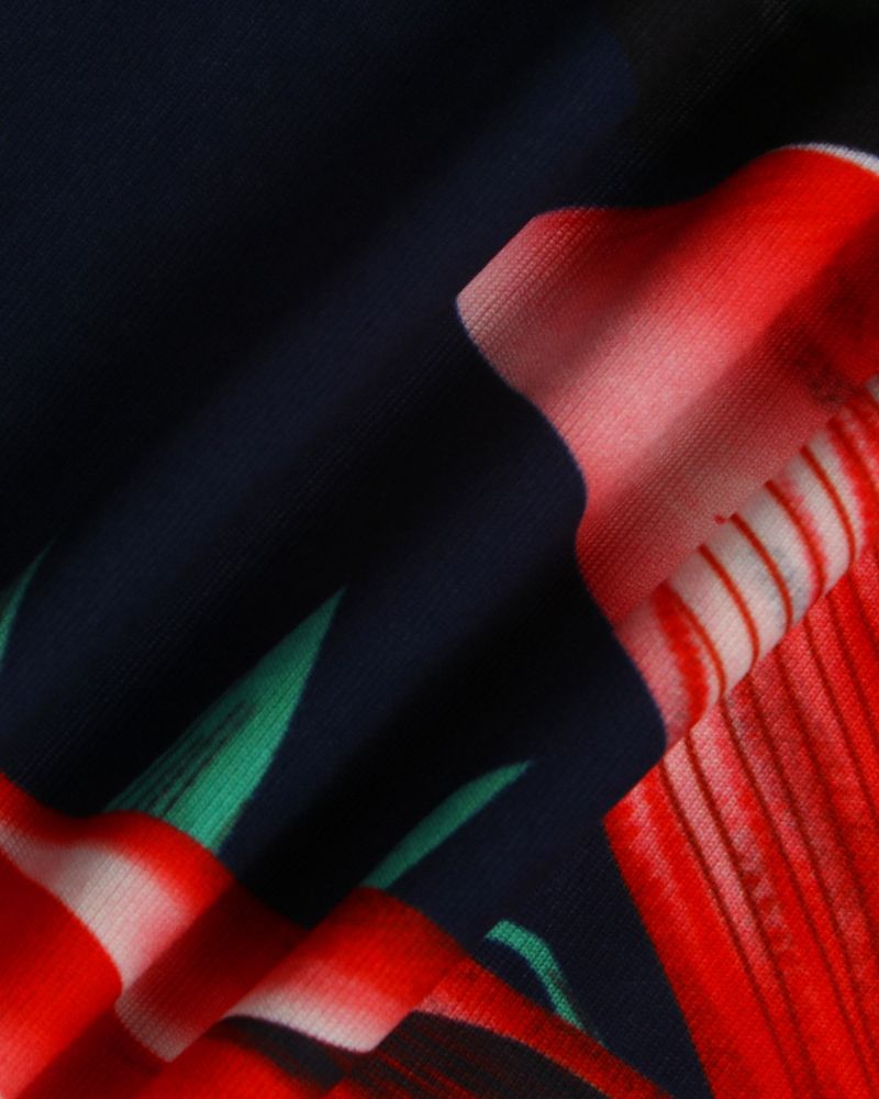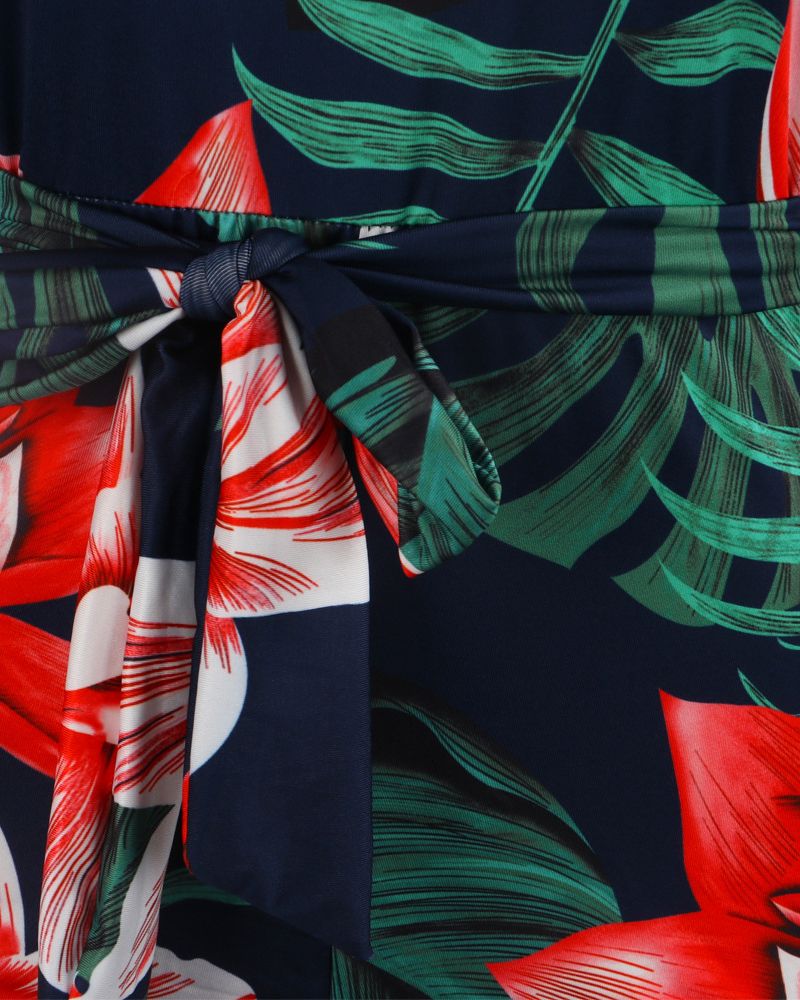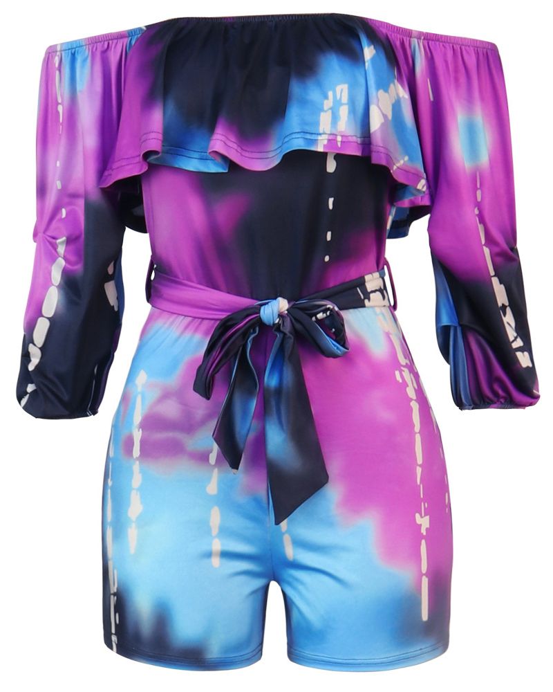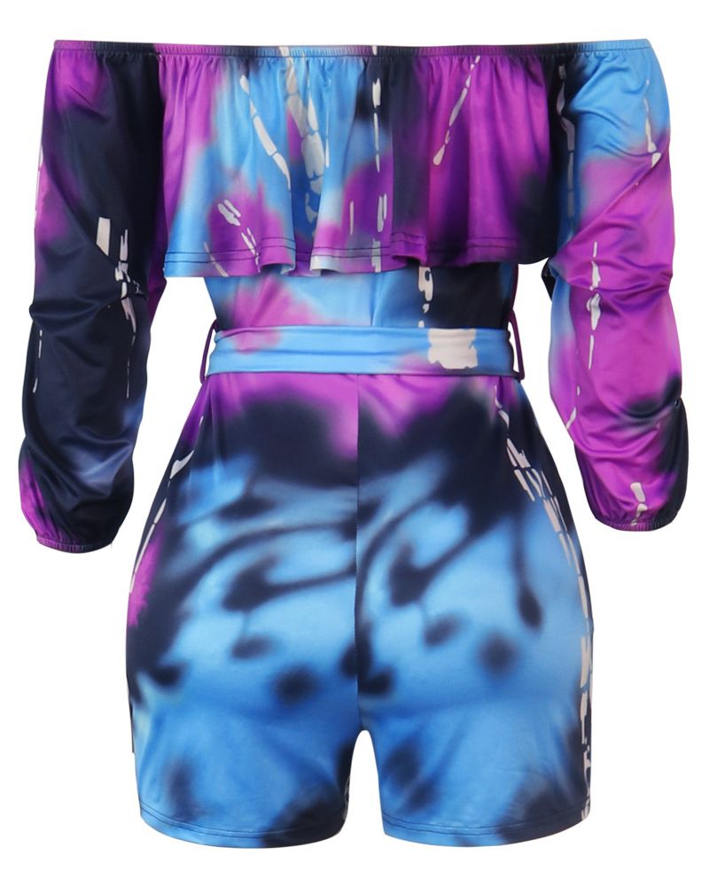 Allover Print Foldover Belted Waist Off Shoulder Romper