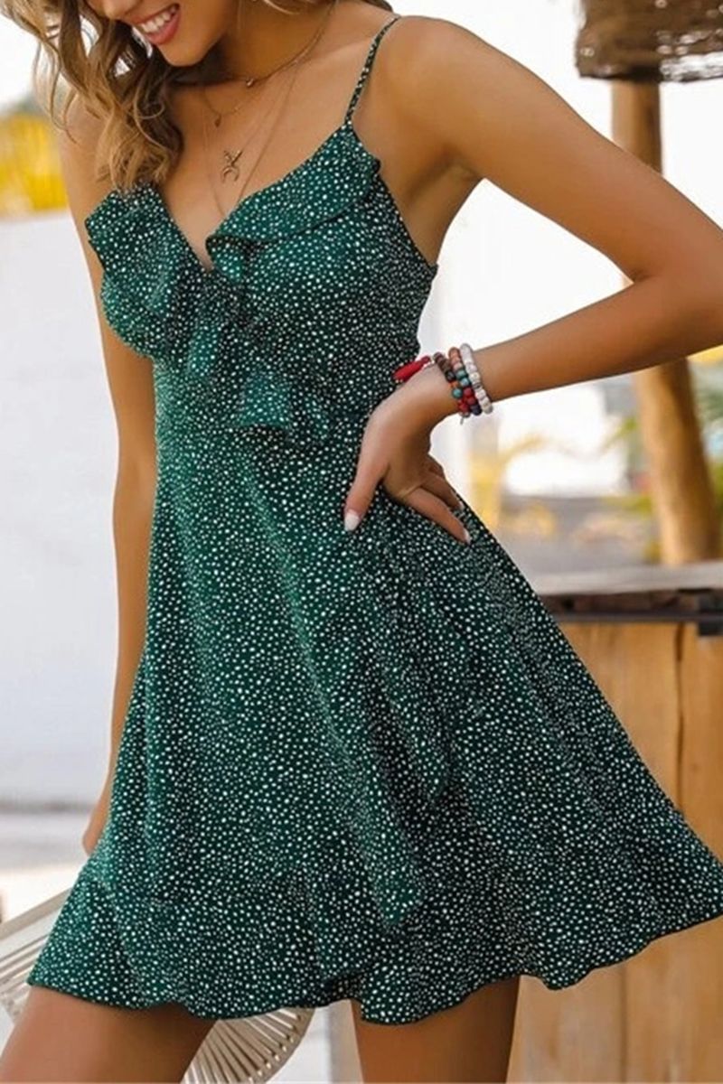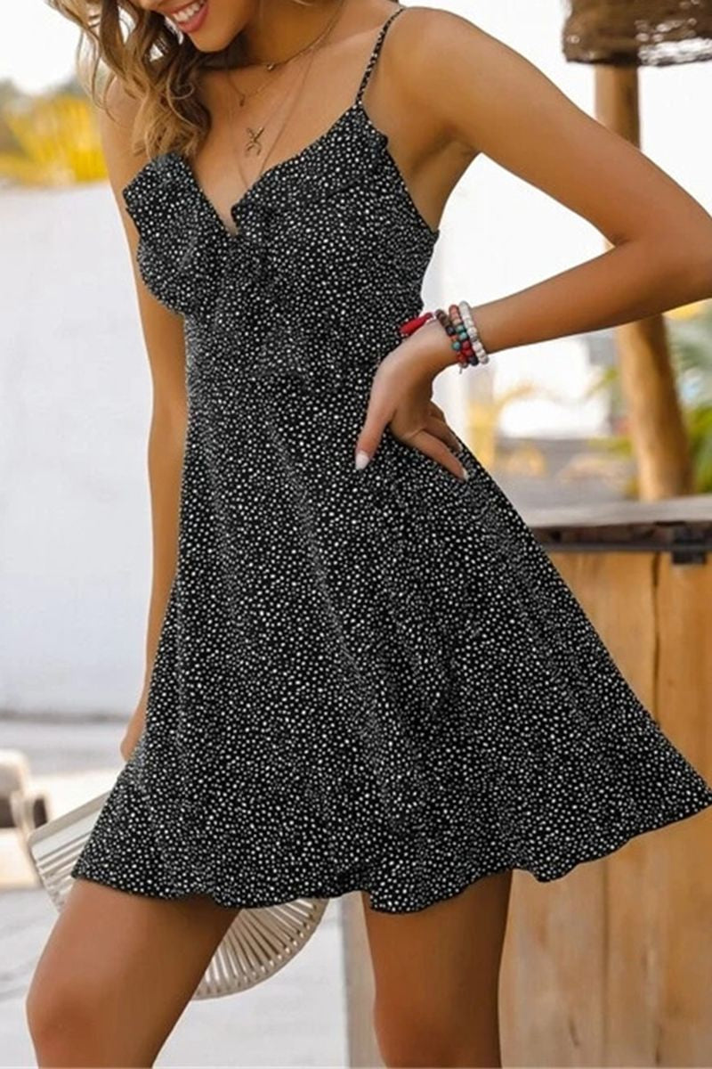 Allover Print Wrap Hem Ruffle Trim Cami Dress