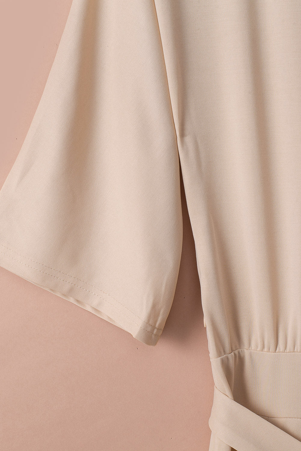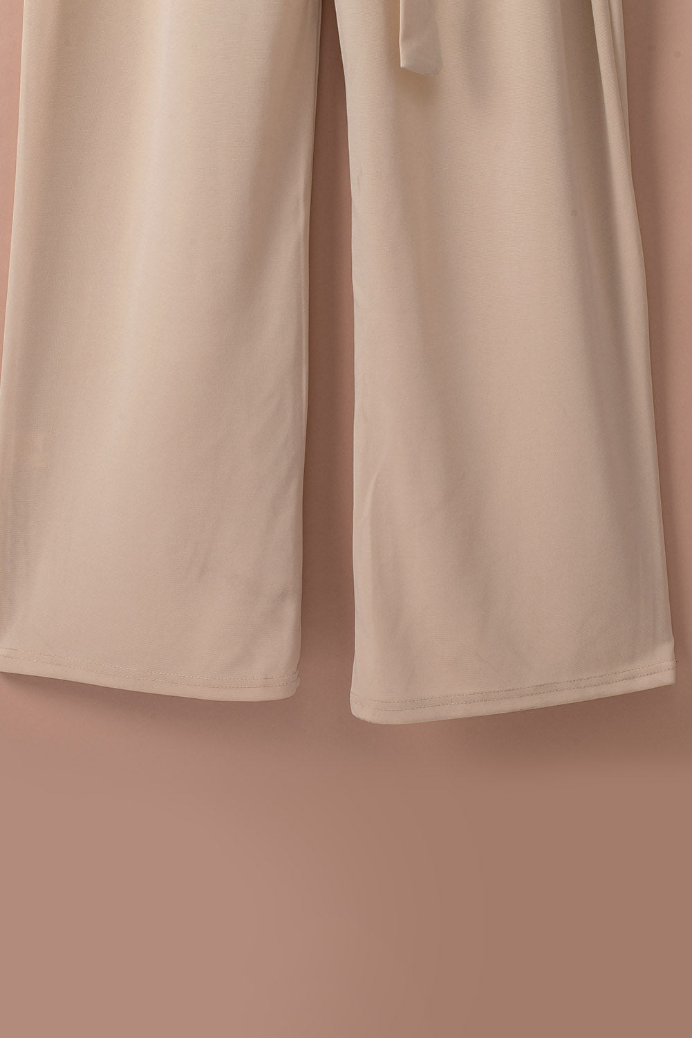 Apricot Bracelet Sleeve Waist Tie Wide Leg Jumpsuit