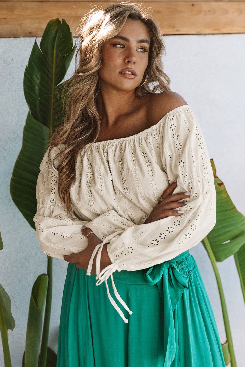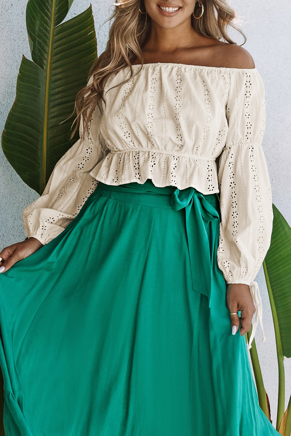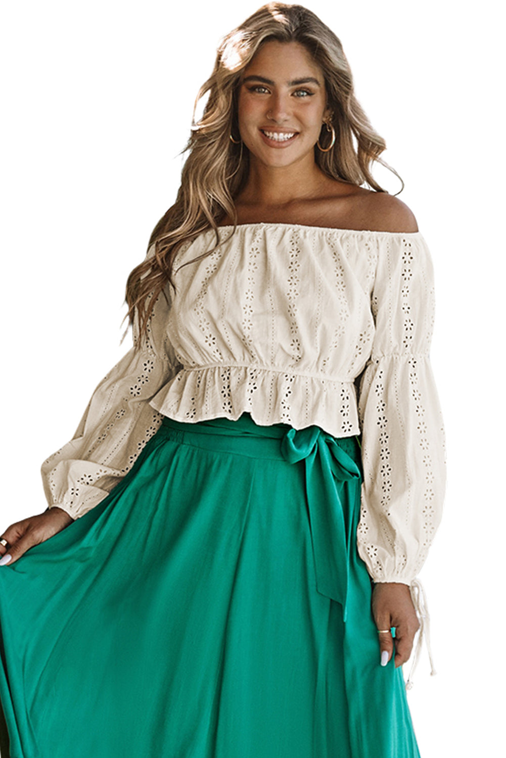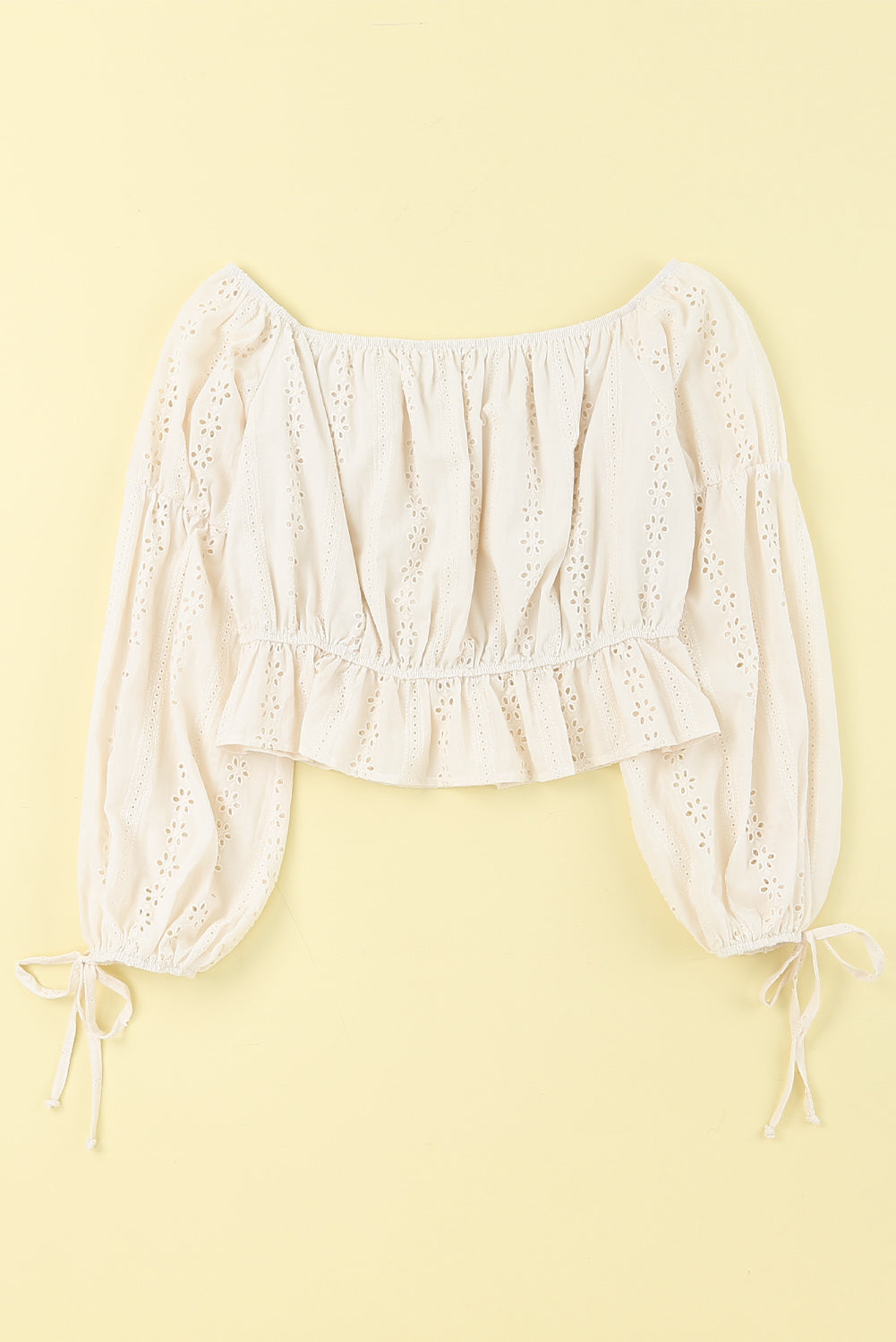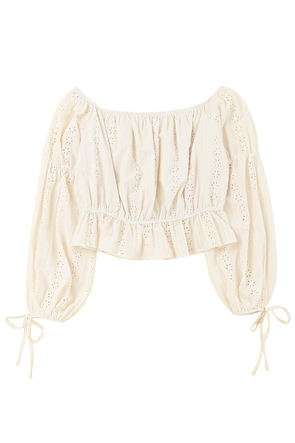 Apricot Off The Shoulder Eyelet Crop Top