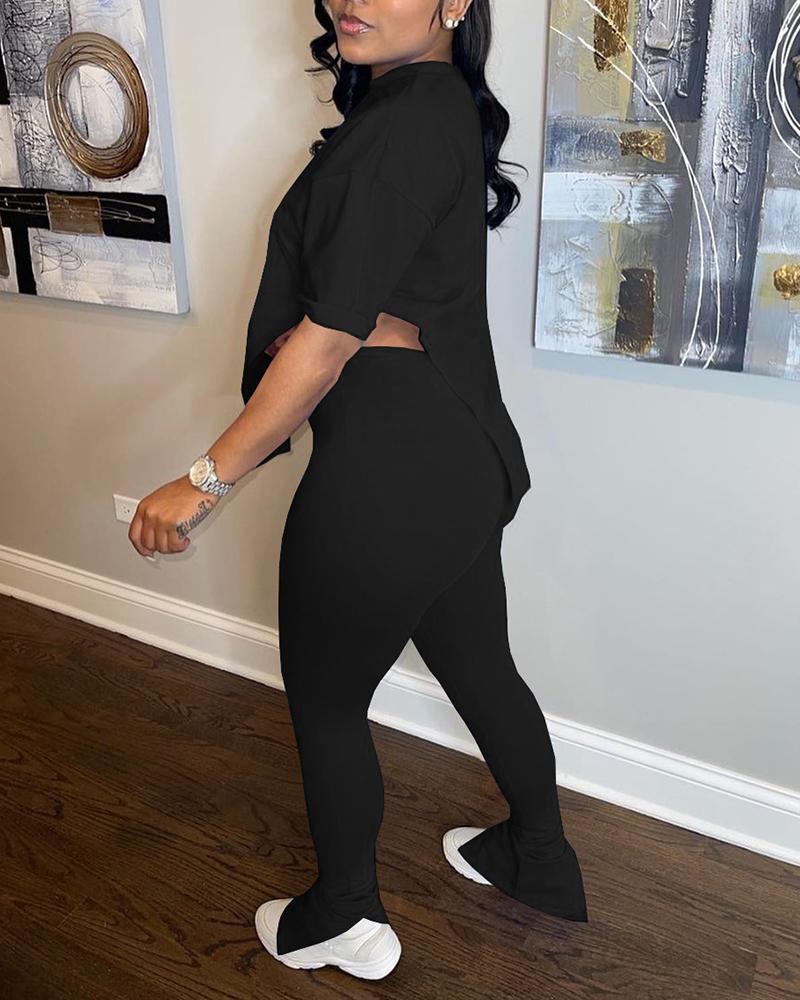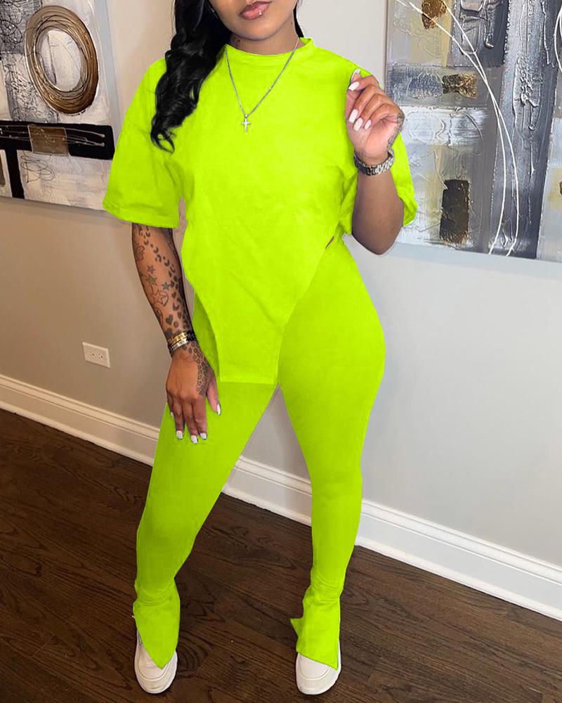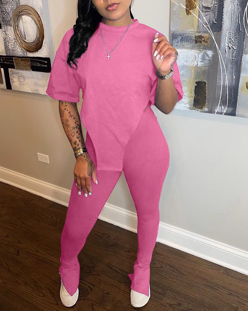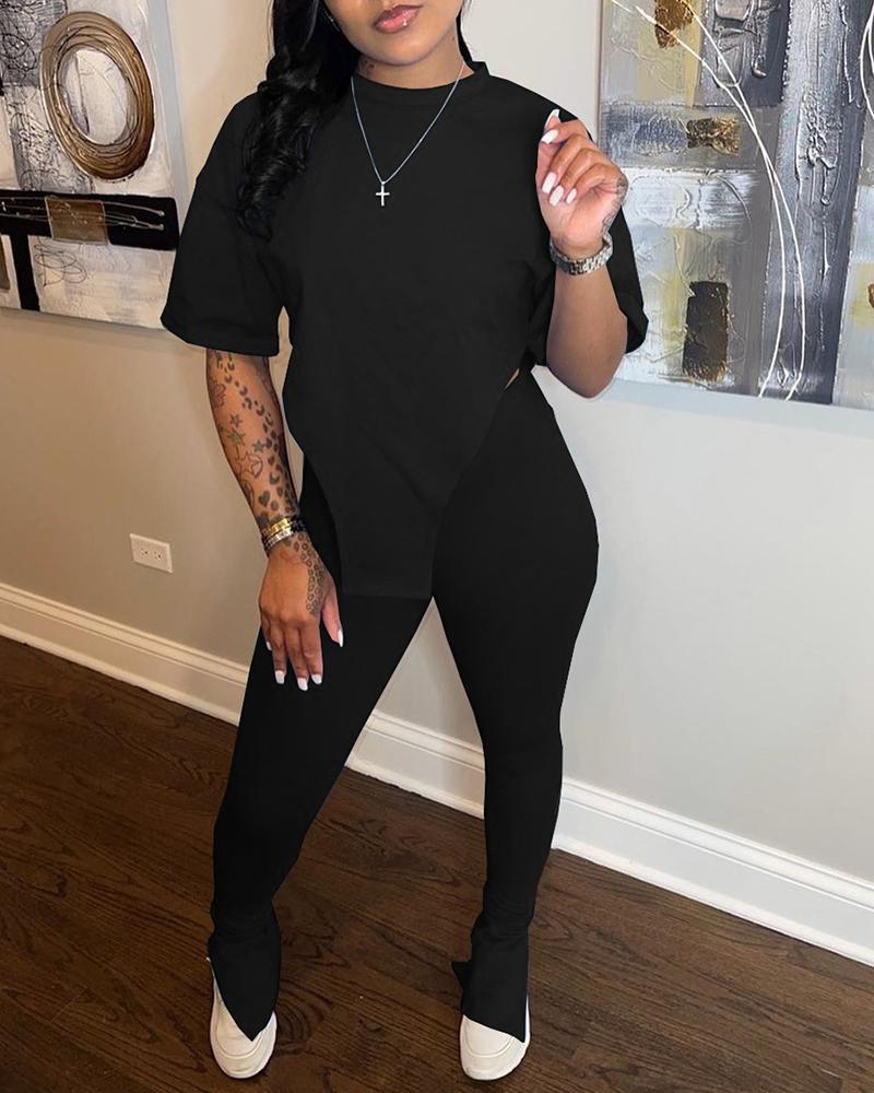 Asymmetrical Split Hem Tee & Pants Set