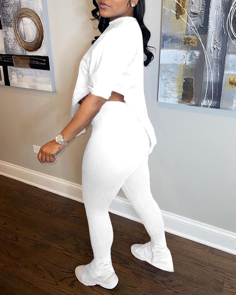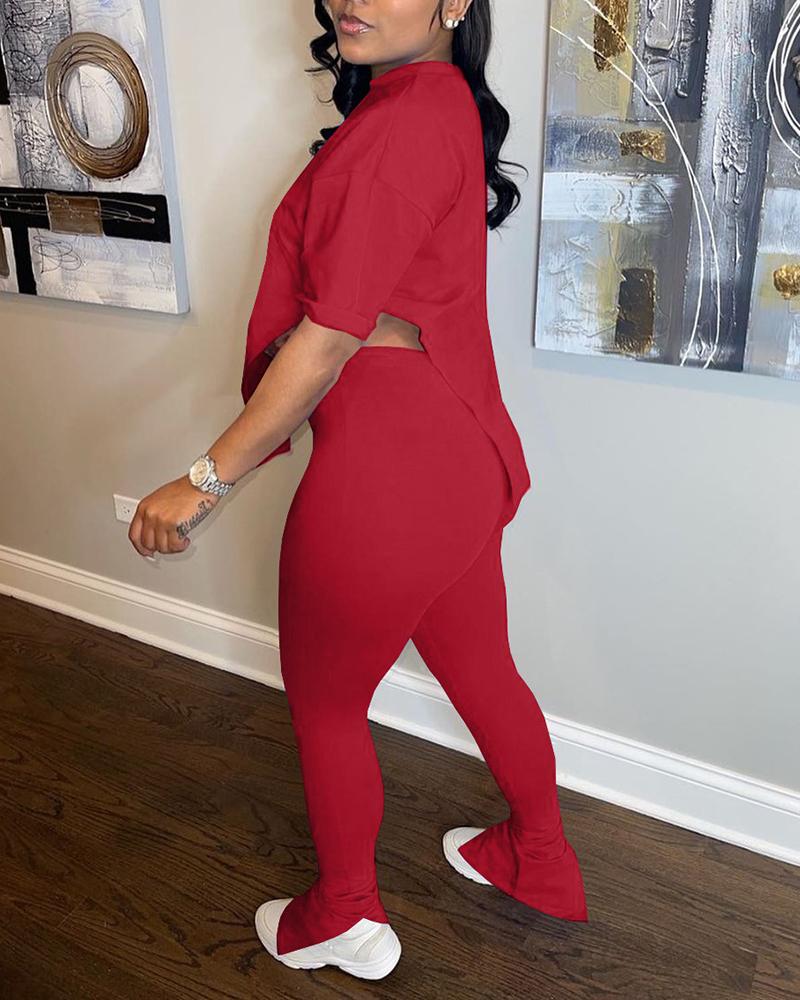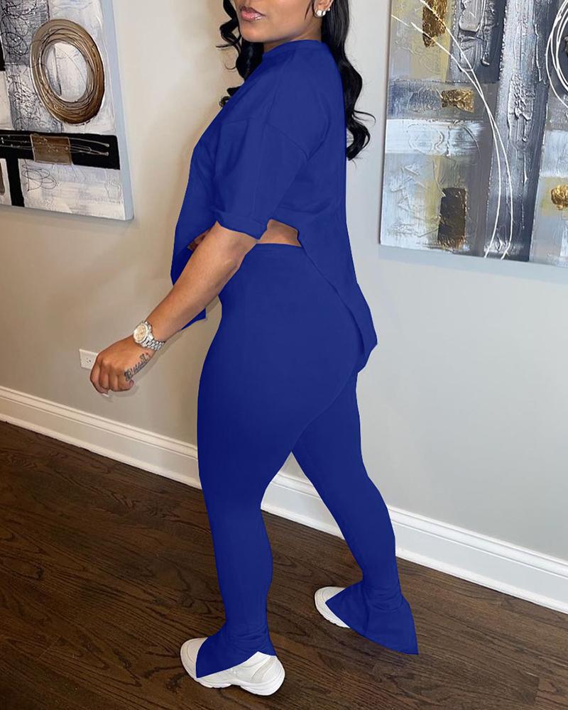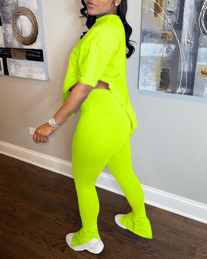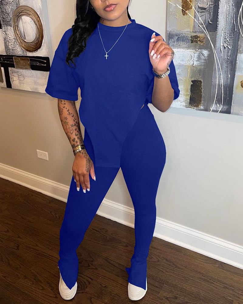 Asymmetrical Split Hem Tee & Pants Set