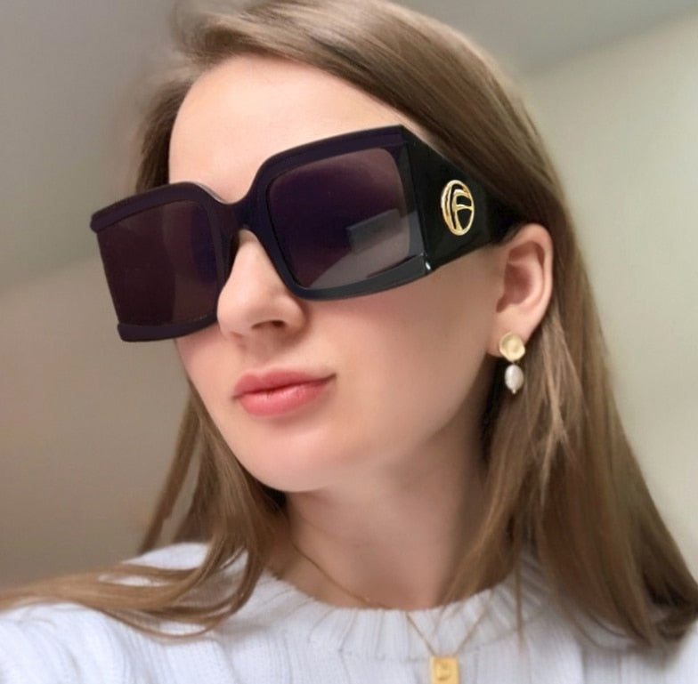 Big Frame Triangular Temple Vintage UV400 Square Sunglasses