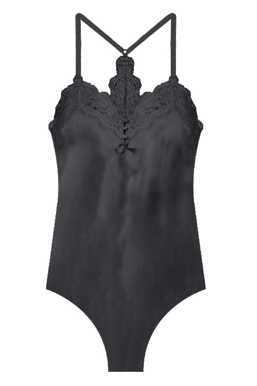 • This bodysuit for women combines the sensuality of lace with the sleekness of satin