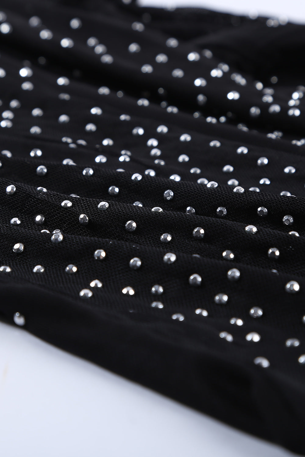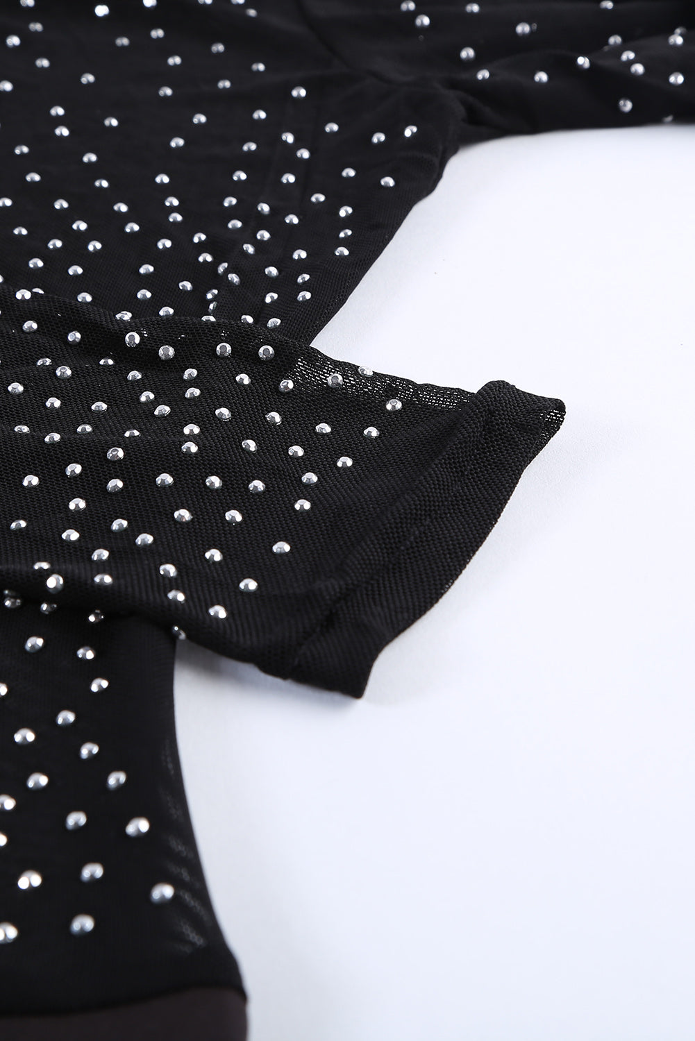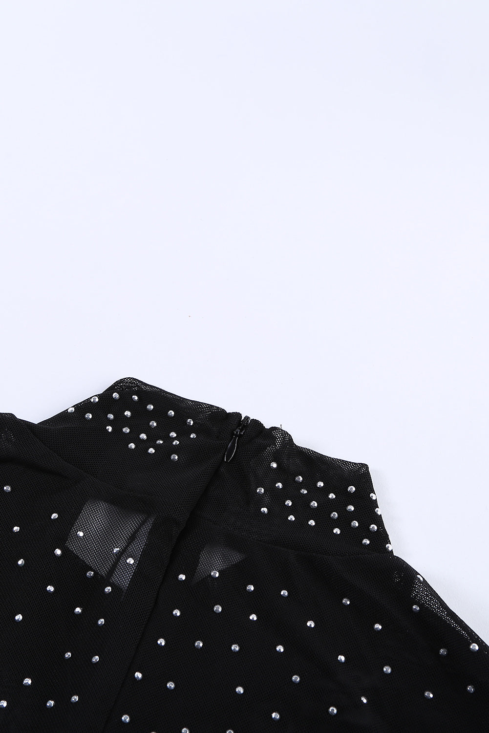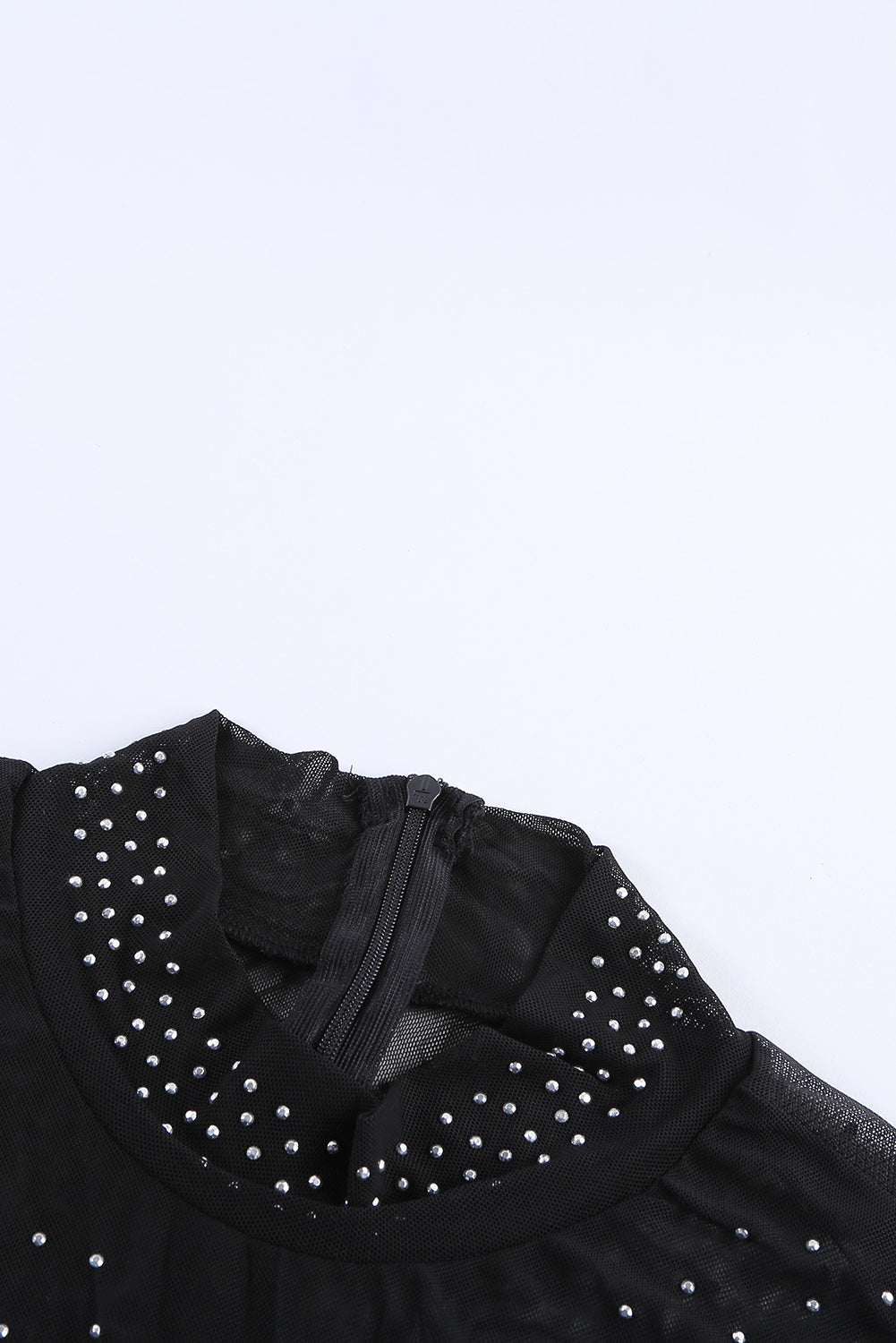 Mock neckline, sheer mesh bodice and silver studded design scattering