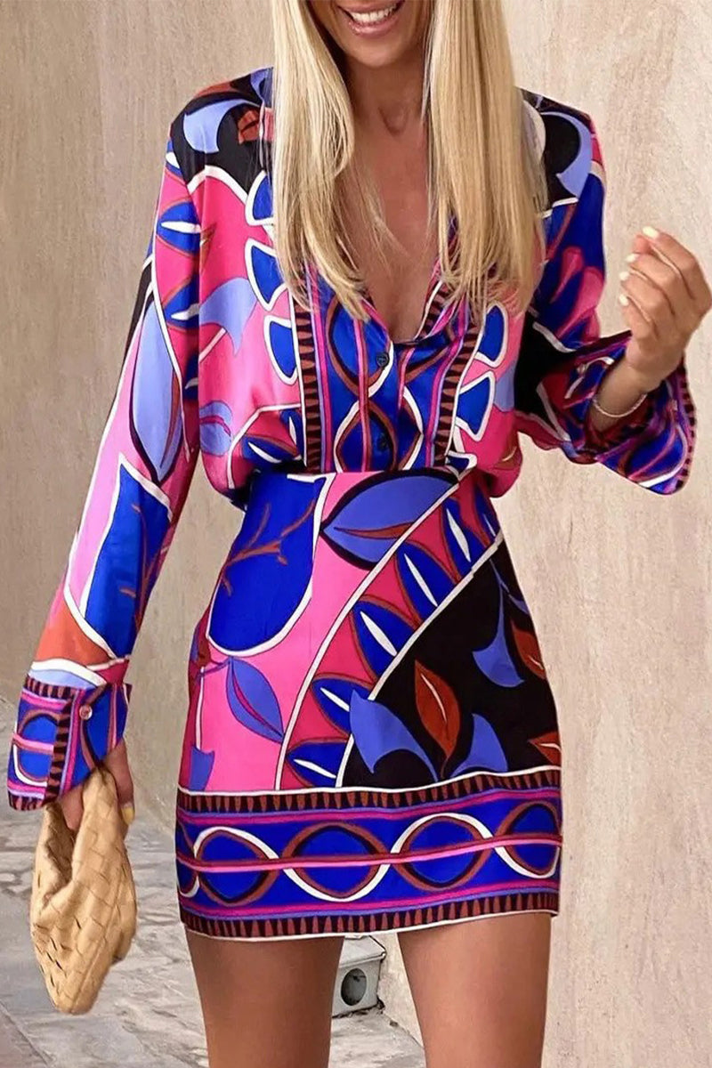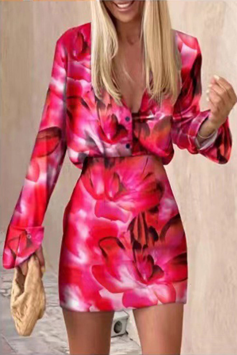 British Style Elegant Print Patchwork Buttons V Neck Long Sleeve Two Pieces(7 Colors)
