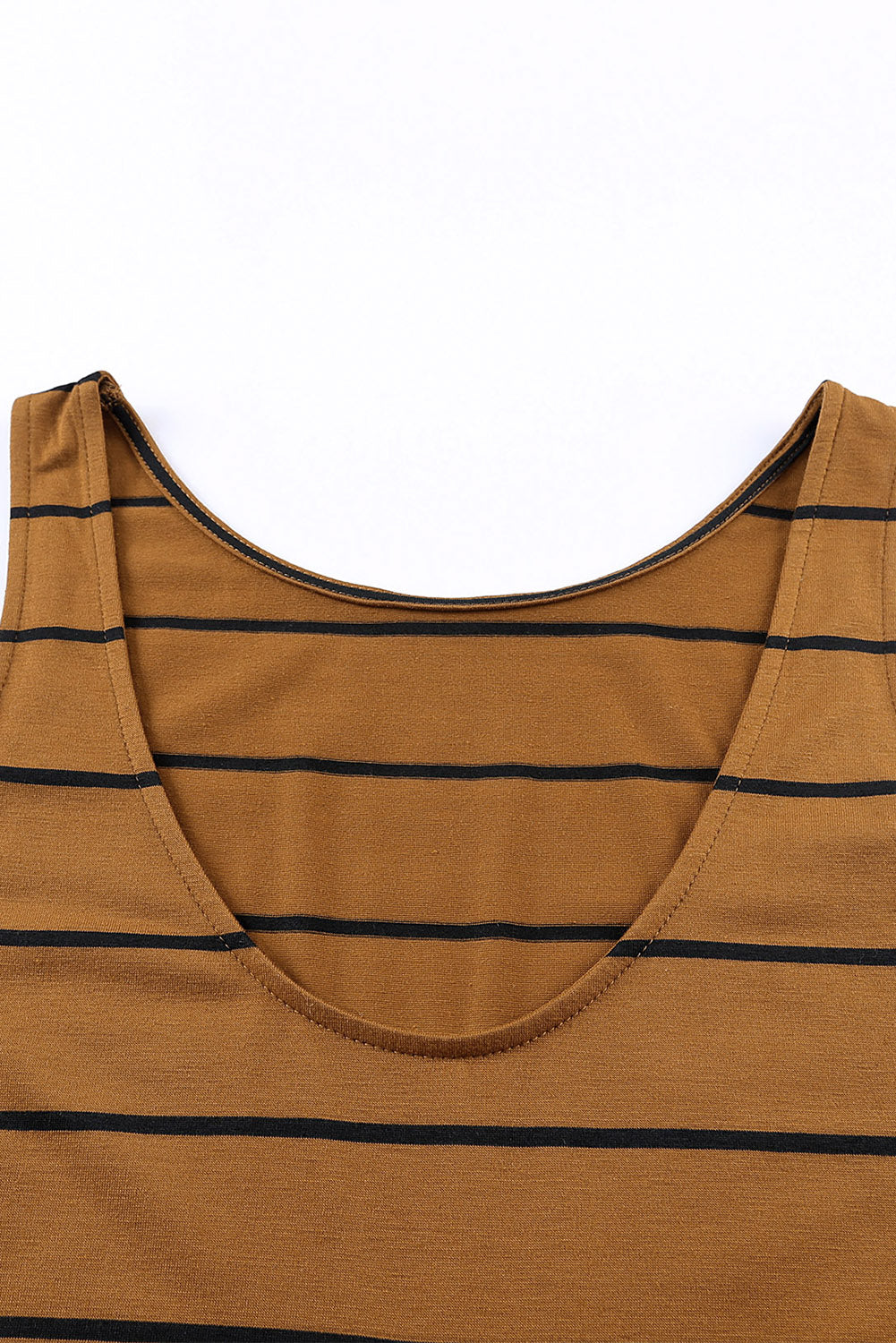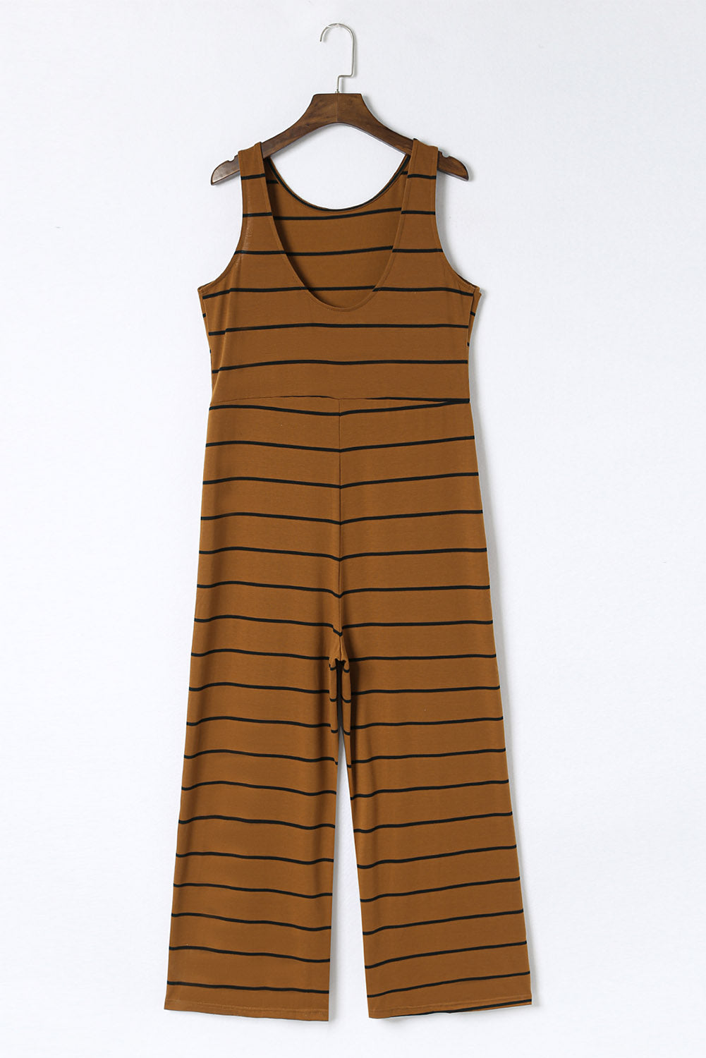 Brown Striped Sleeveless Wide Leg Jumpsuit