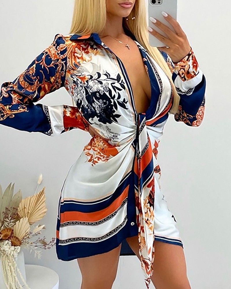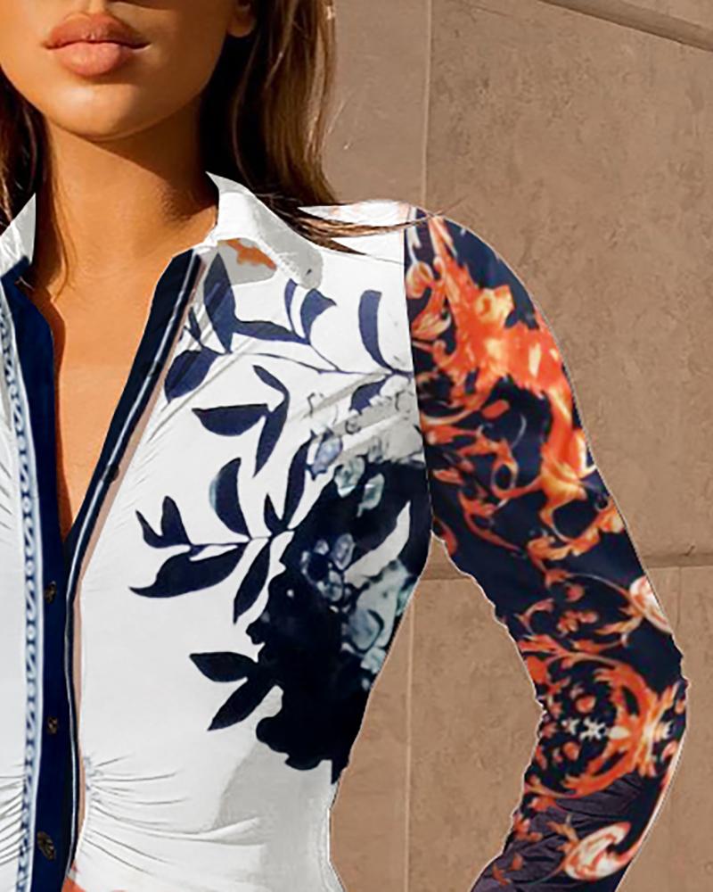 Buttoned Design Floral Print Shirt Dress