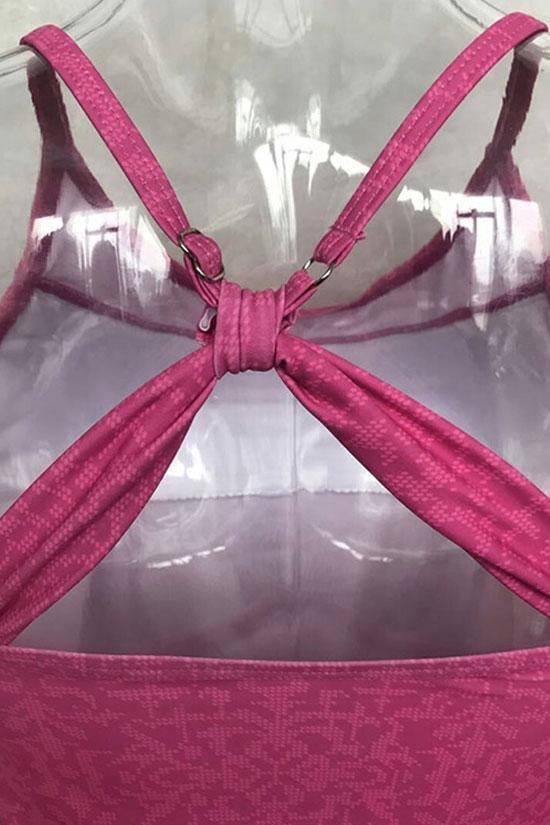 Casual two piece tankini sets featuring a padded swim top with ruched details in ethnic printed, elastic shoulder straps with cross racerback on the back, matching with a low rise bikini bottom in brief-cut bottom and solid color.