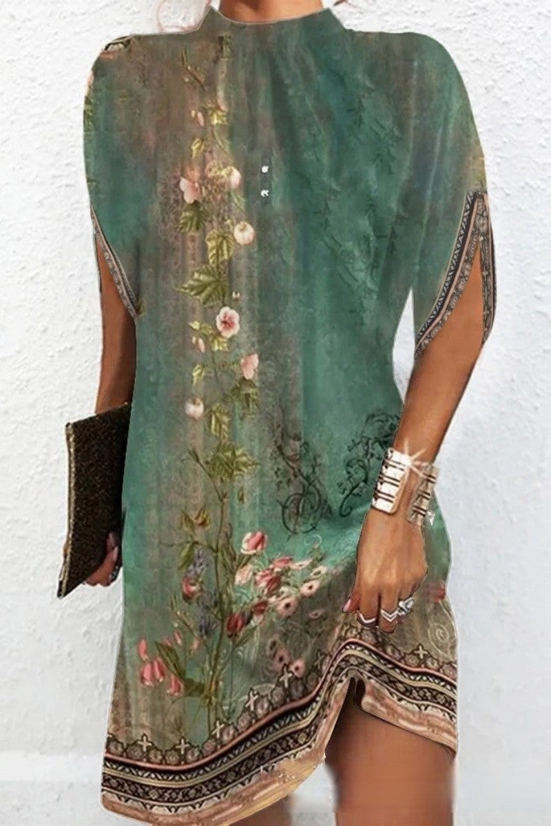 Casual Print Solid Patchwork Half A Turtleneck Short Sleeve Dress(11 Colors)