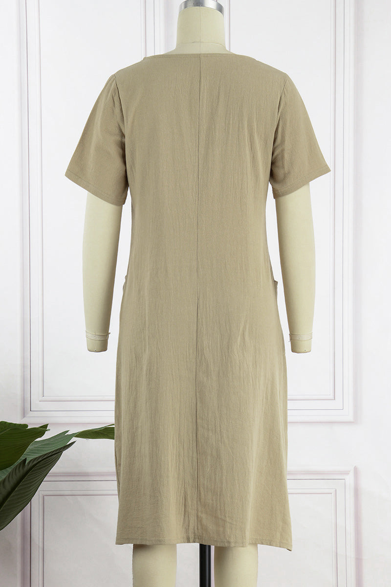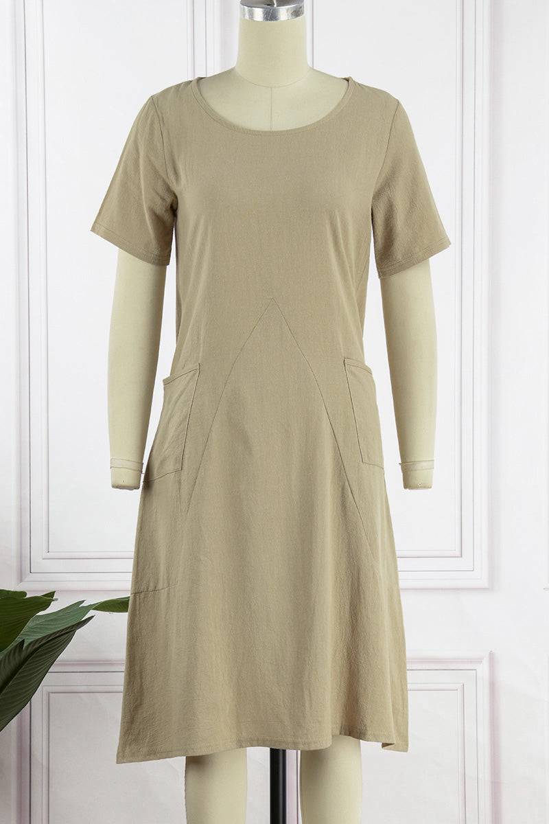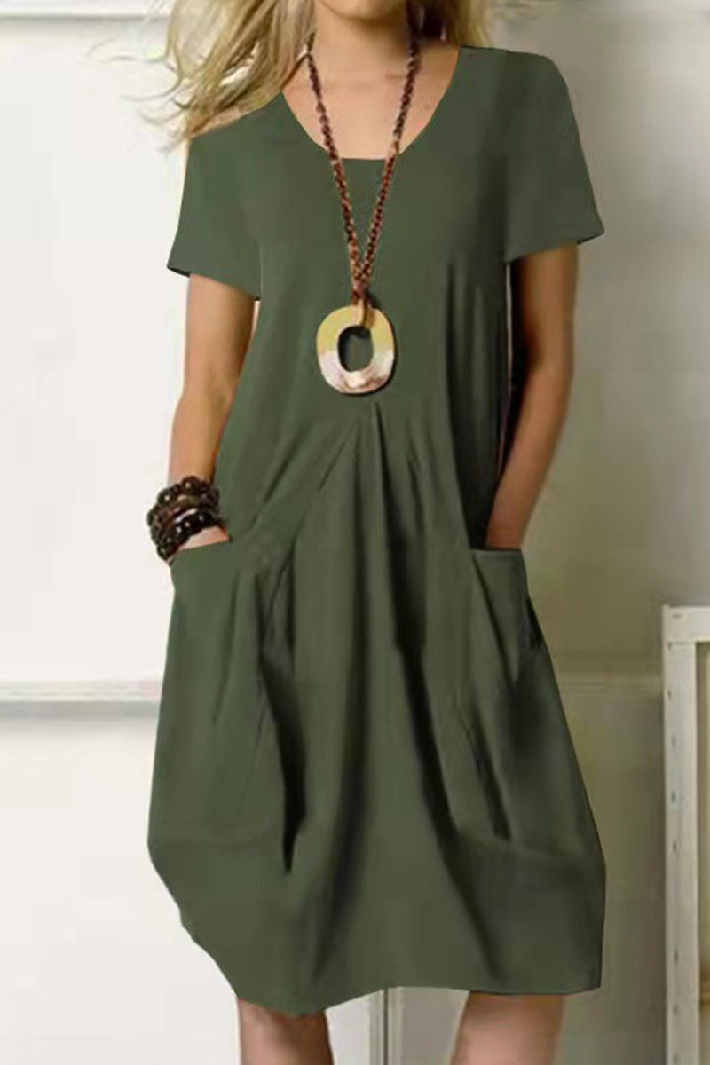 Casual Simplicity Solid Pocket O Neck Short Sleeve Dress(4 Colors)