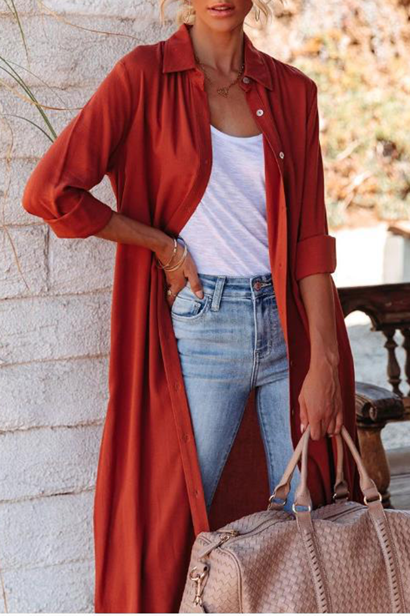 Casual Solid Buckle Turndown Collar Shirt Dress Dresses(3 Colors)
