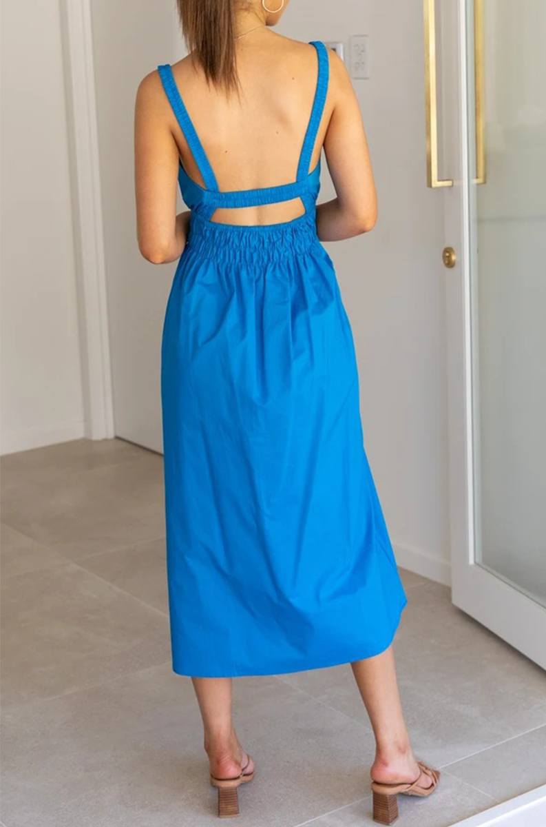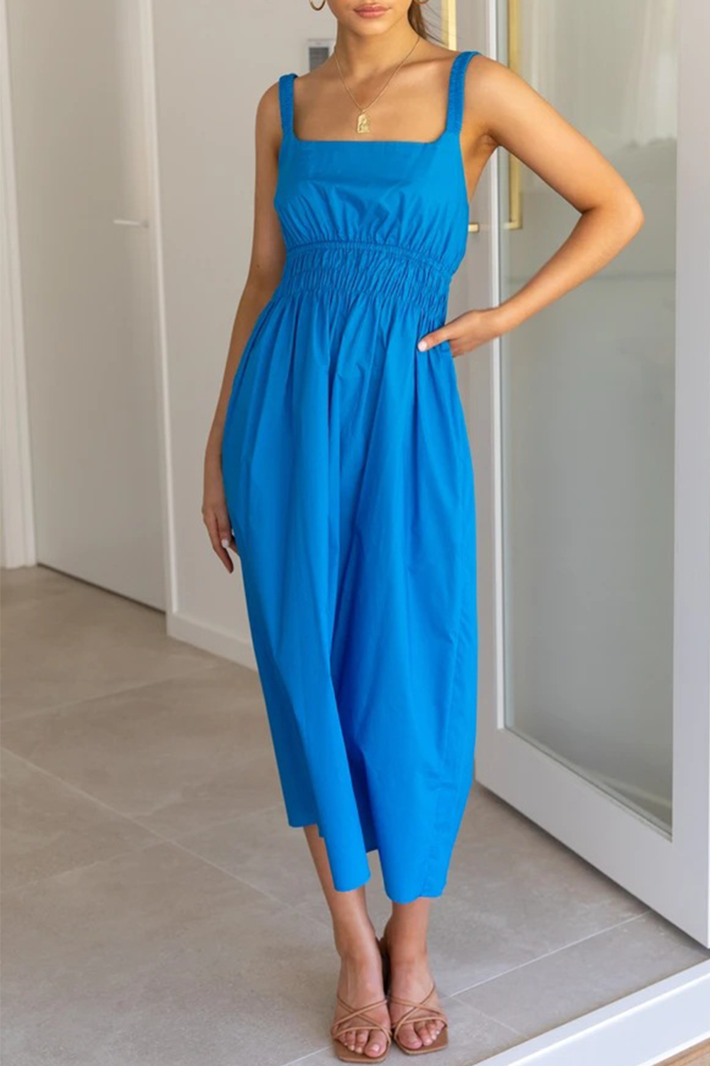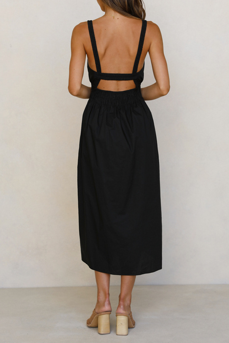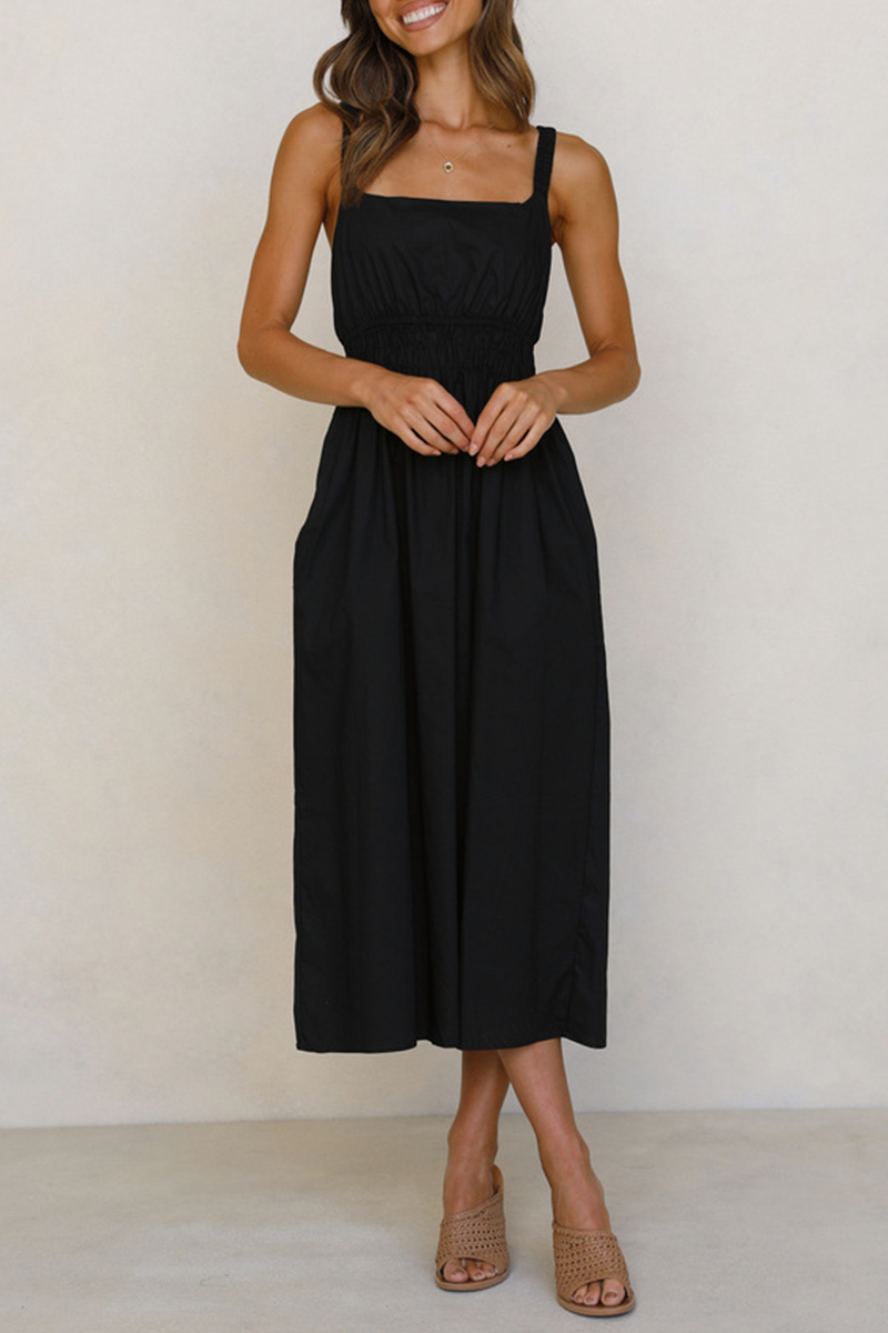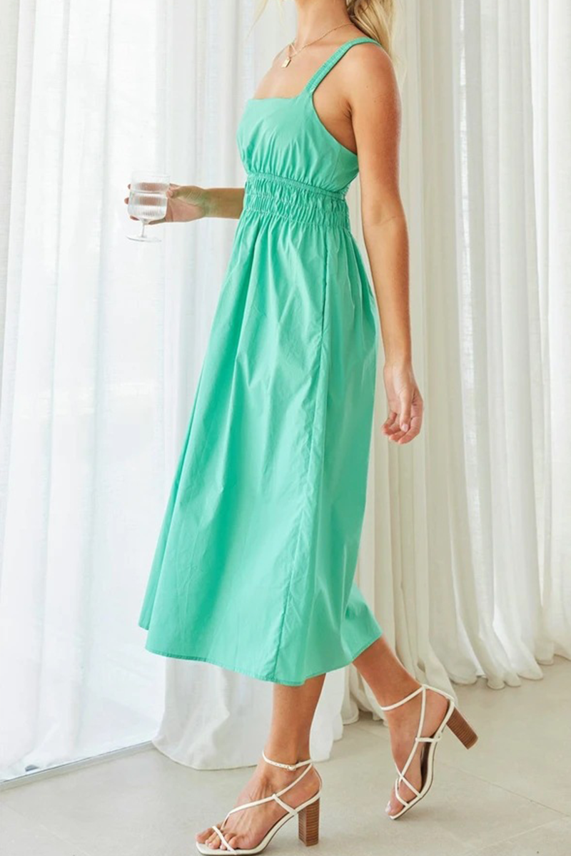 Casual Solid Split Joint Backless Square Collar Waist Skirt Dresses