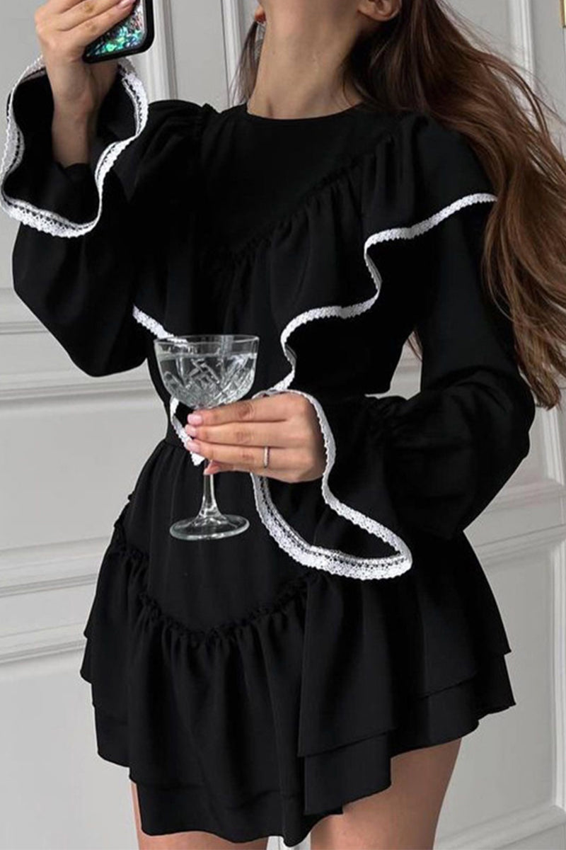 Celebrities Elegant Solid Flounce O Neck A Line Dresses