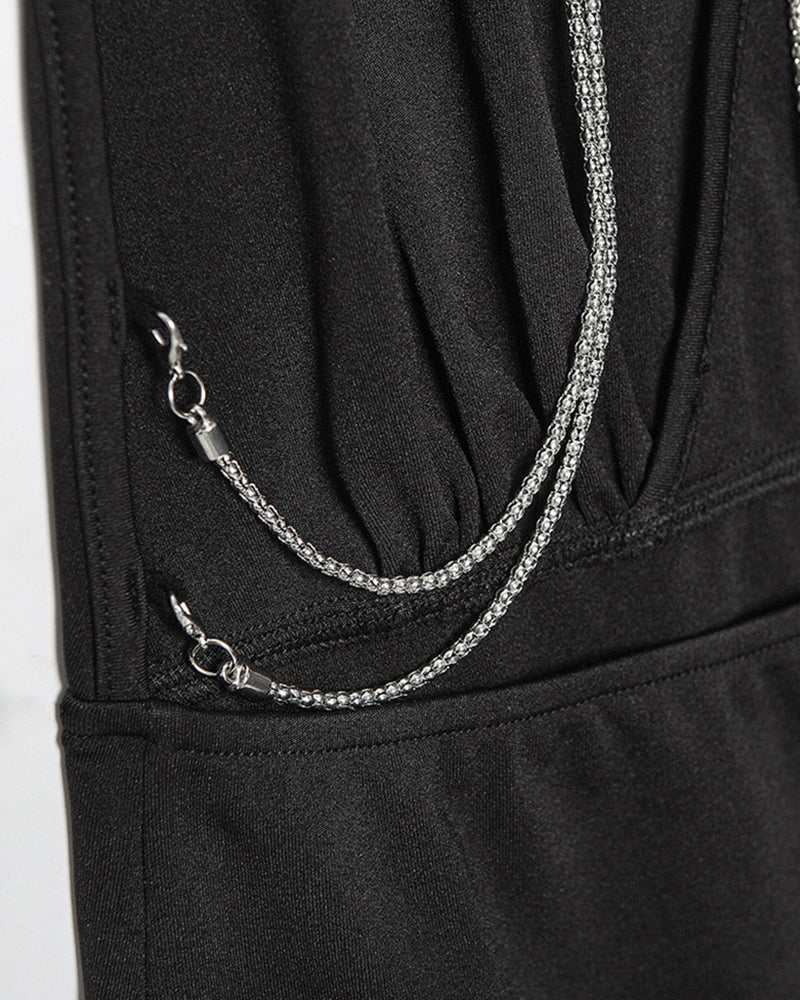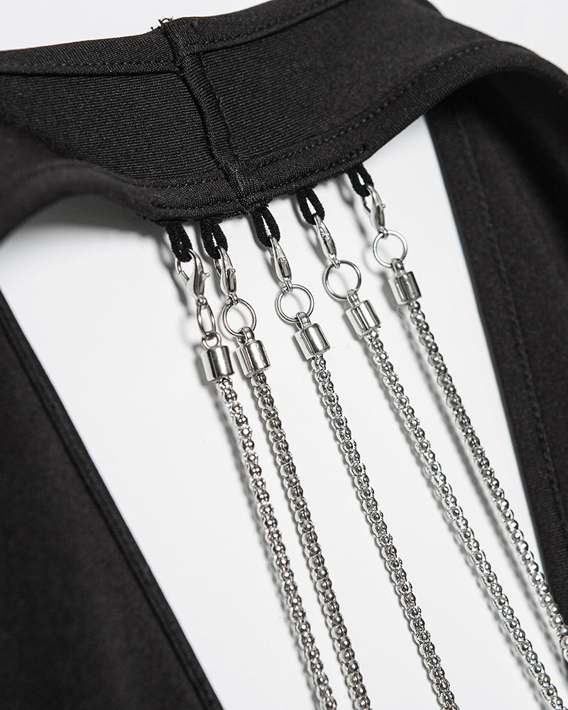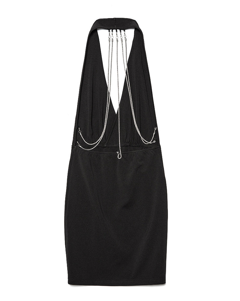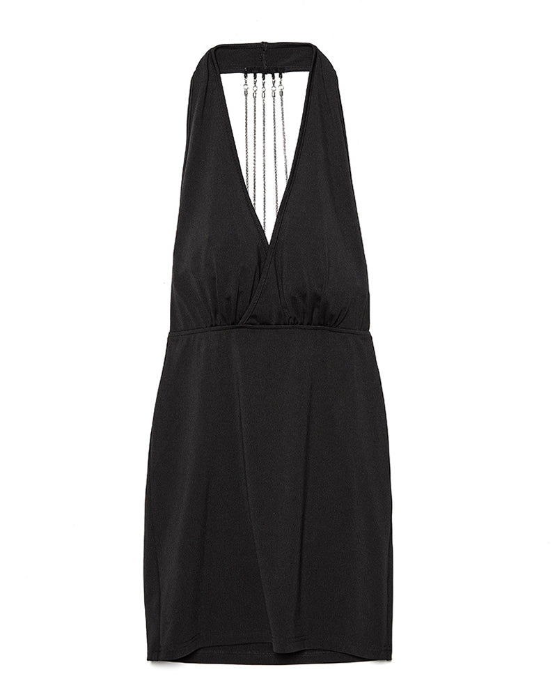 Chain Decor Backless Halter Mini Dress