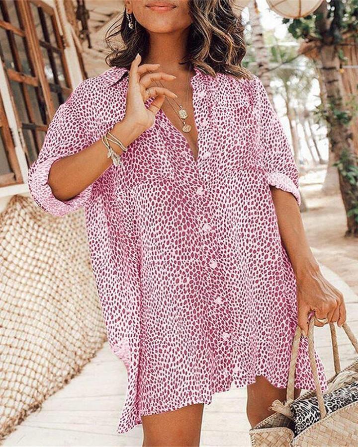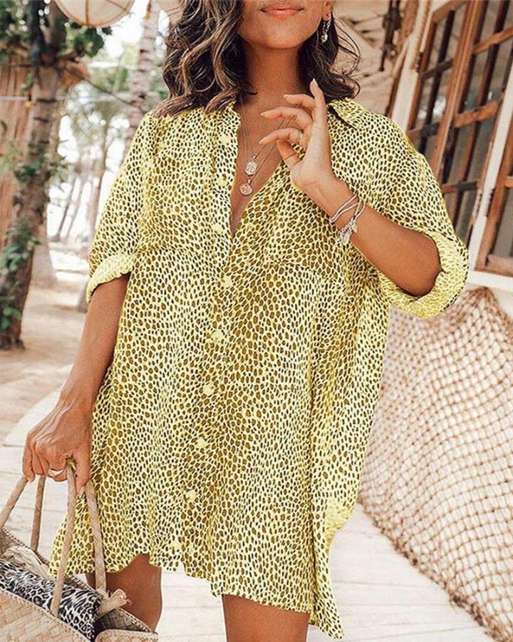 Cheetah Print Button Front Shirt Dress