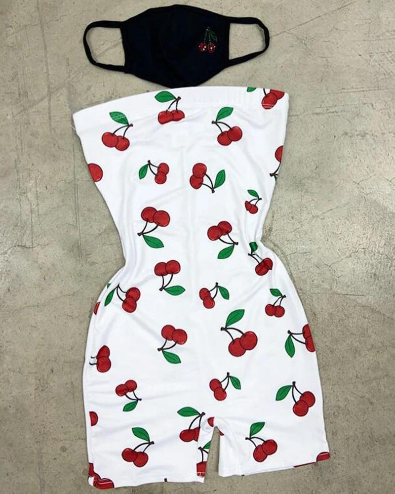 Cherry Print Form Fitted Bandeau Casual Romper