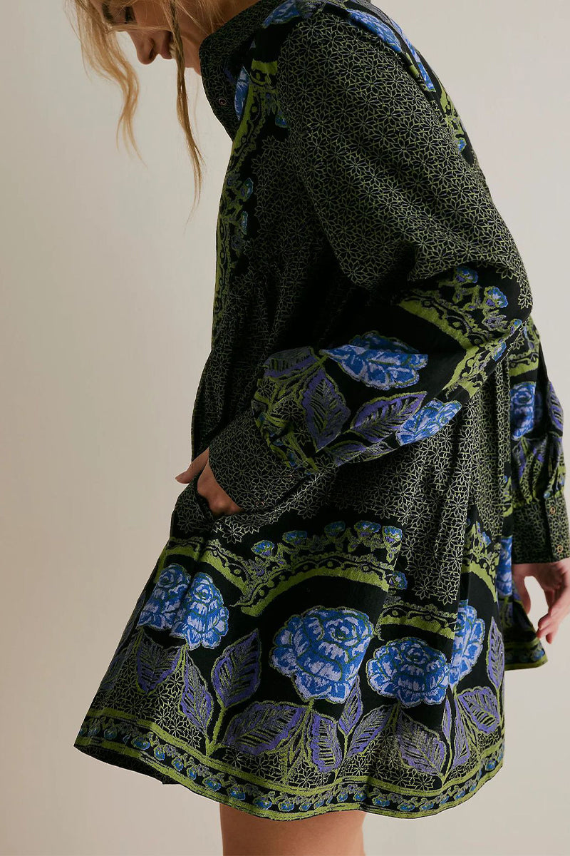 College Print Patchwork Turndown Collar Shirt Dress Dresses