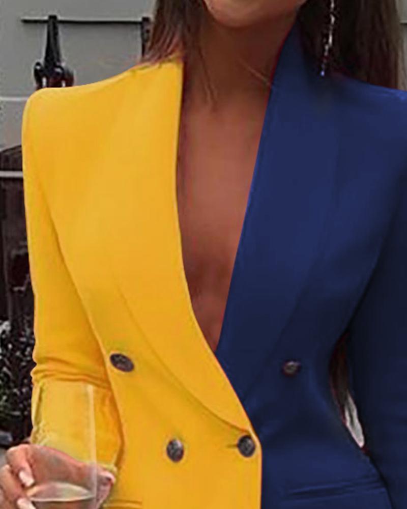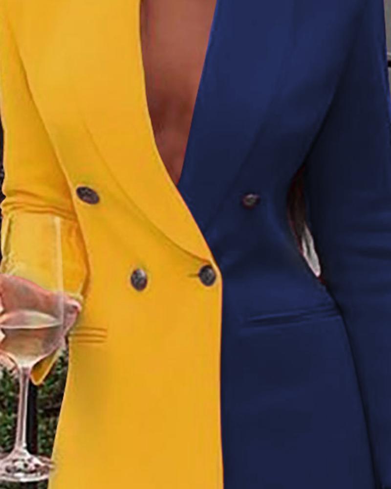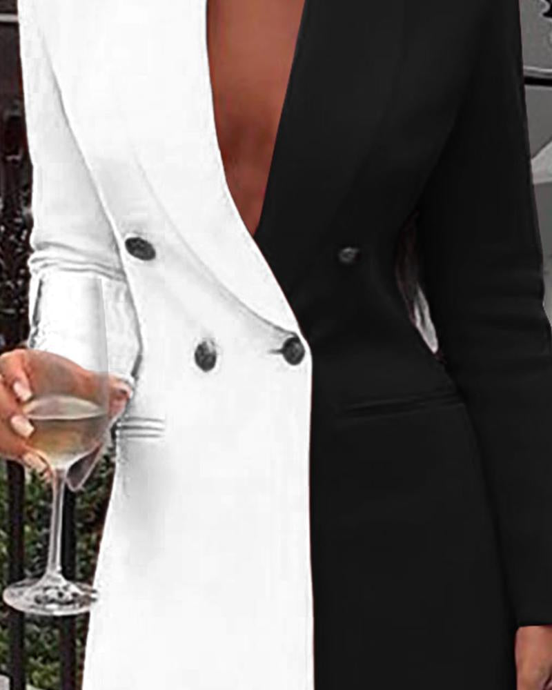 Colorblock Patchwork Long Sleeve Blazer Dress