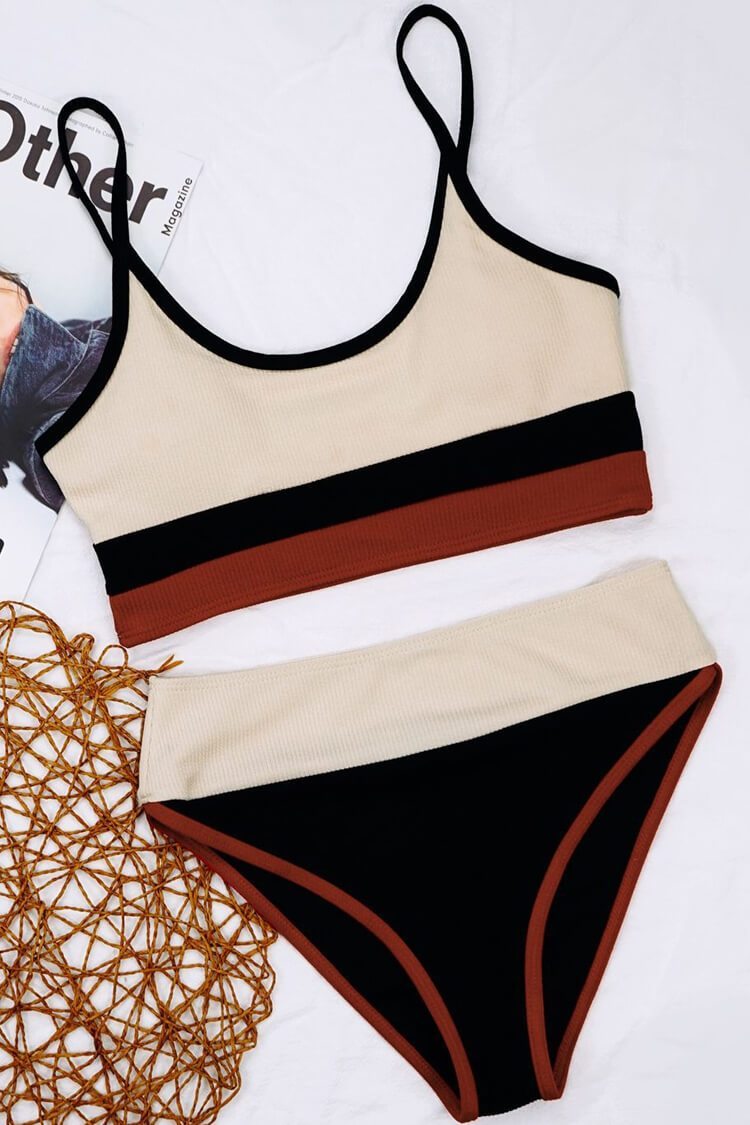 Contrast High Waist Ribbed Bralette Bikini Swimsuit - Two Piece Set