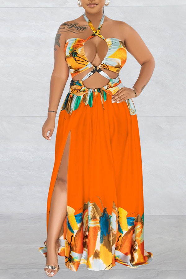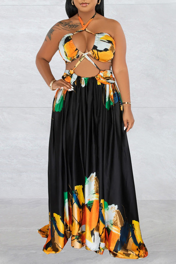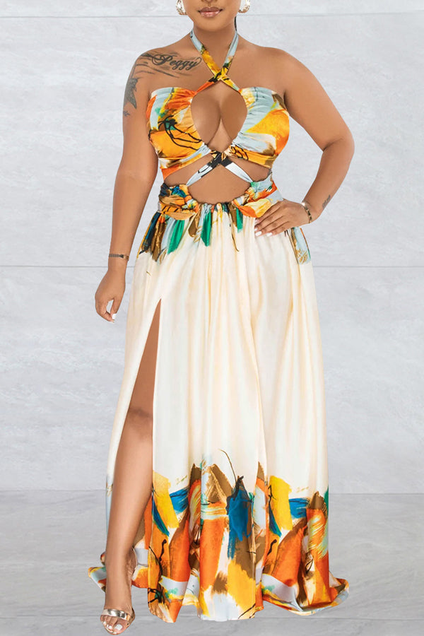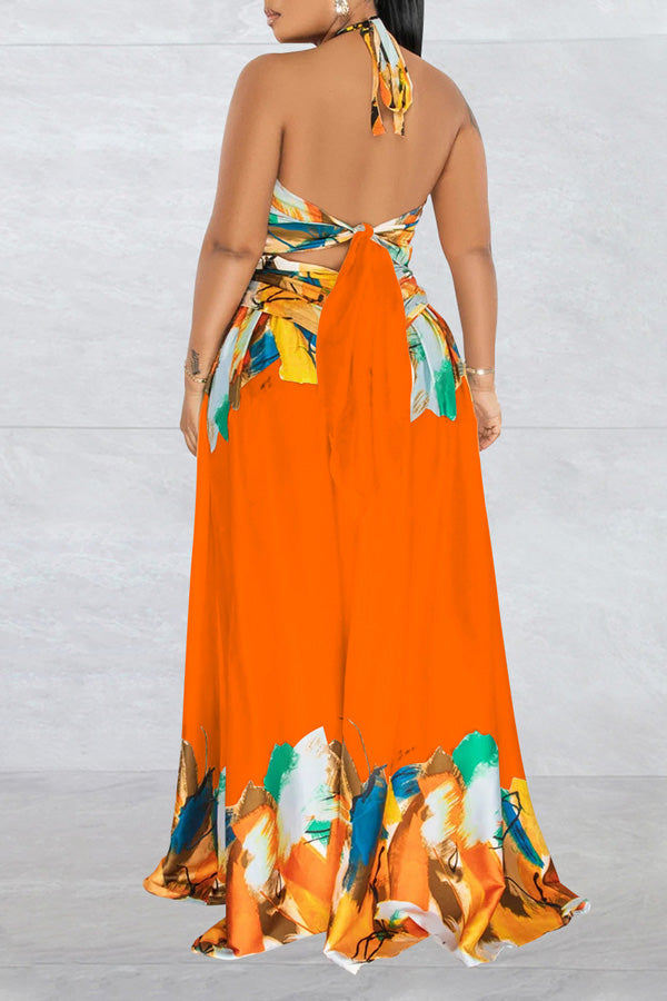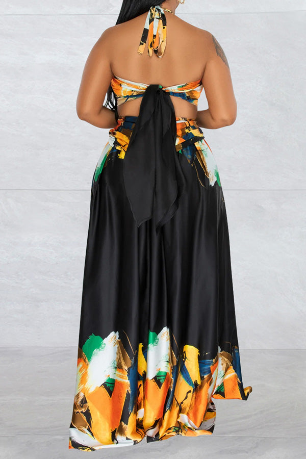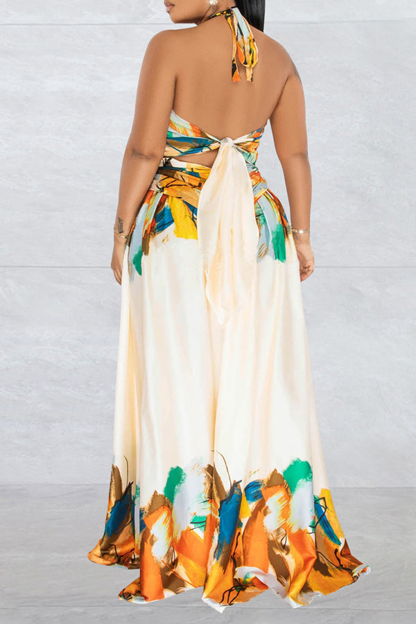 Contrast Tie Sleeveless Wrap Maxi Dress